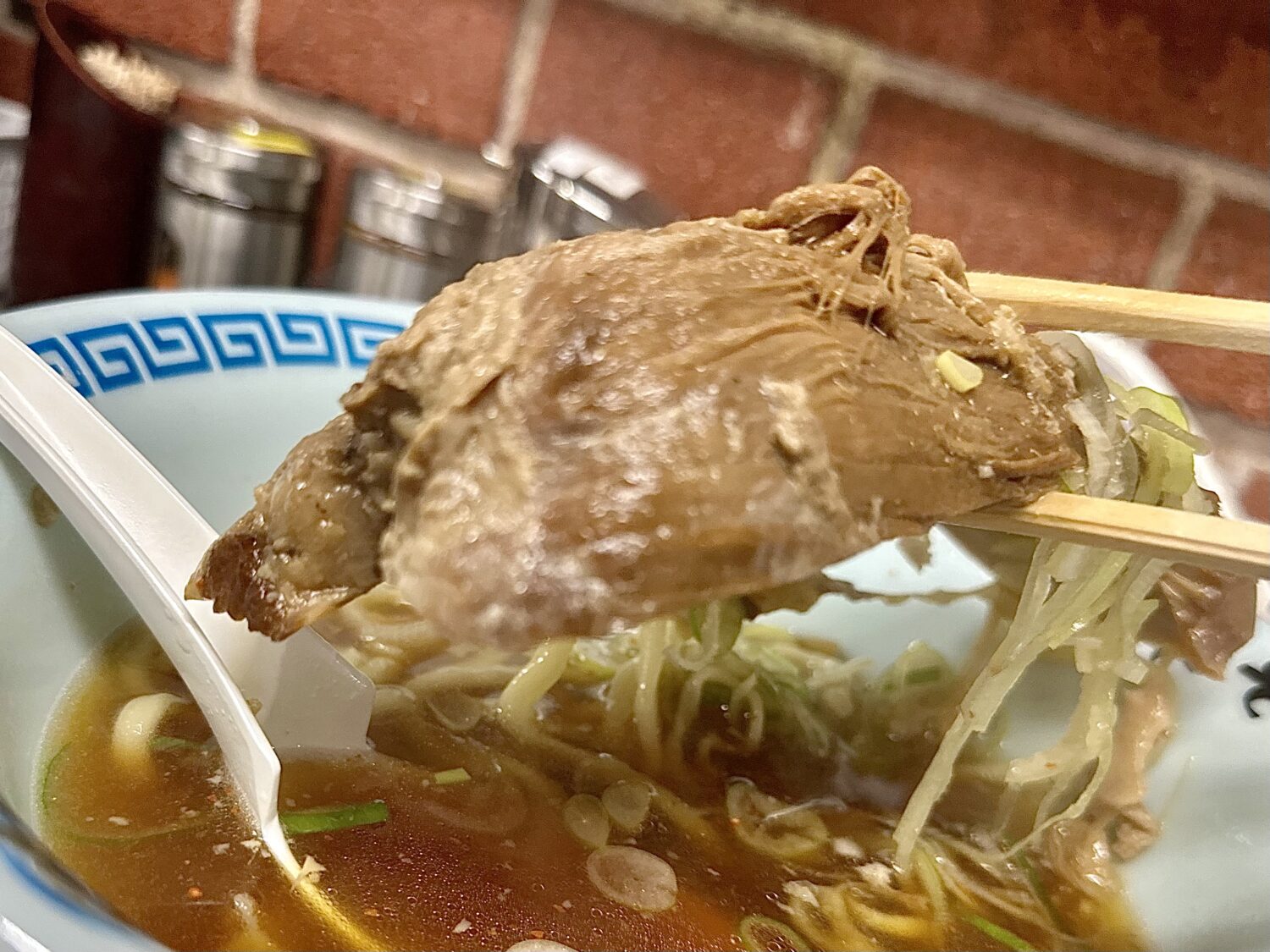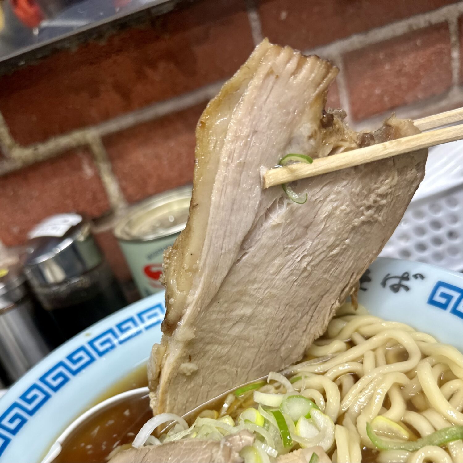 それはたっぷり乗ったチャーシューも同様で、齧った瞬間からビリッとショッペかった元祖に比べたらだいぶマイルドな現代アレンジ