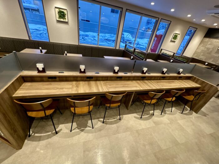 明るく清潔感たっぷりの店内はカウンター席にテーブル席あわせて全部でえーっとえーっとあのそのえーっと( ;´Д`)