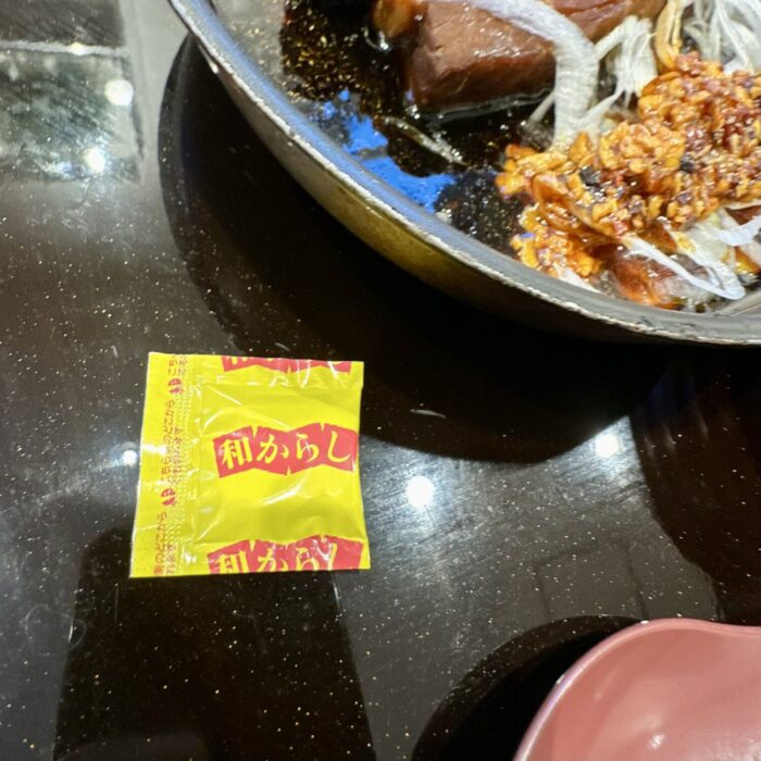 お好みでどうぞの和カラシは個包装で一パック、もっと貰いたい人は要相談で