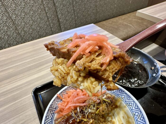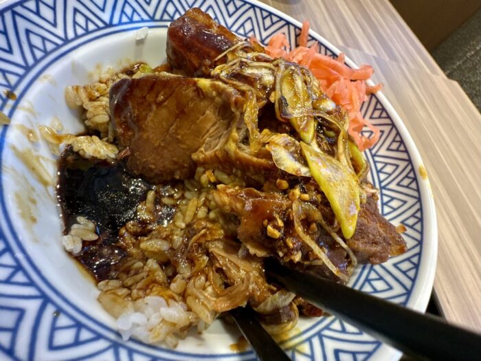 “大きな豚バラ肉をとろけるほど柔らかく煮込み、さっぱりとした味に仕上げた”っていう公式発表そのまんま、これちょっと美味すぎた。