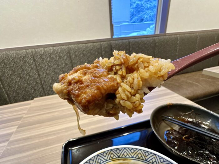 それカラメル代わりの甘辛ダレで喰うんだもん、しかもお代わり自由の無限ライス片手に、大人二人分デスカ?ぐらいのサイズでやるんだもん。