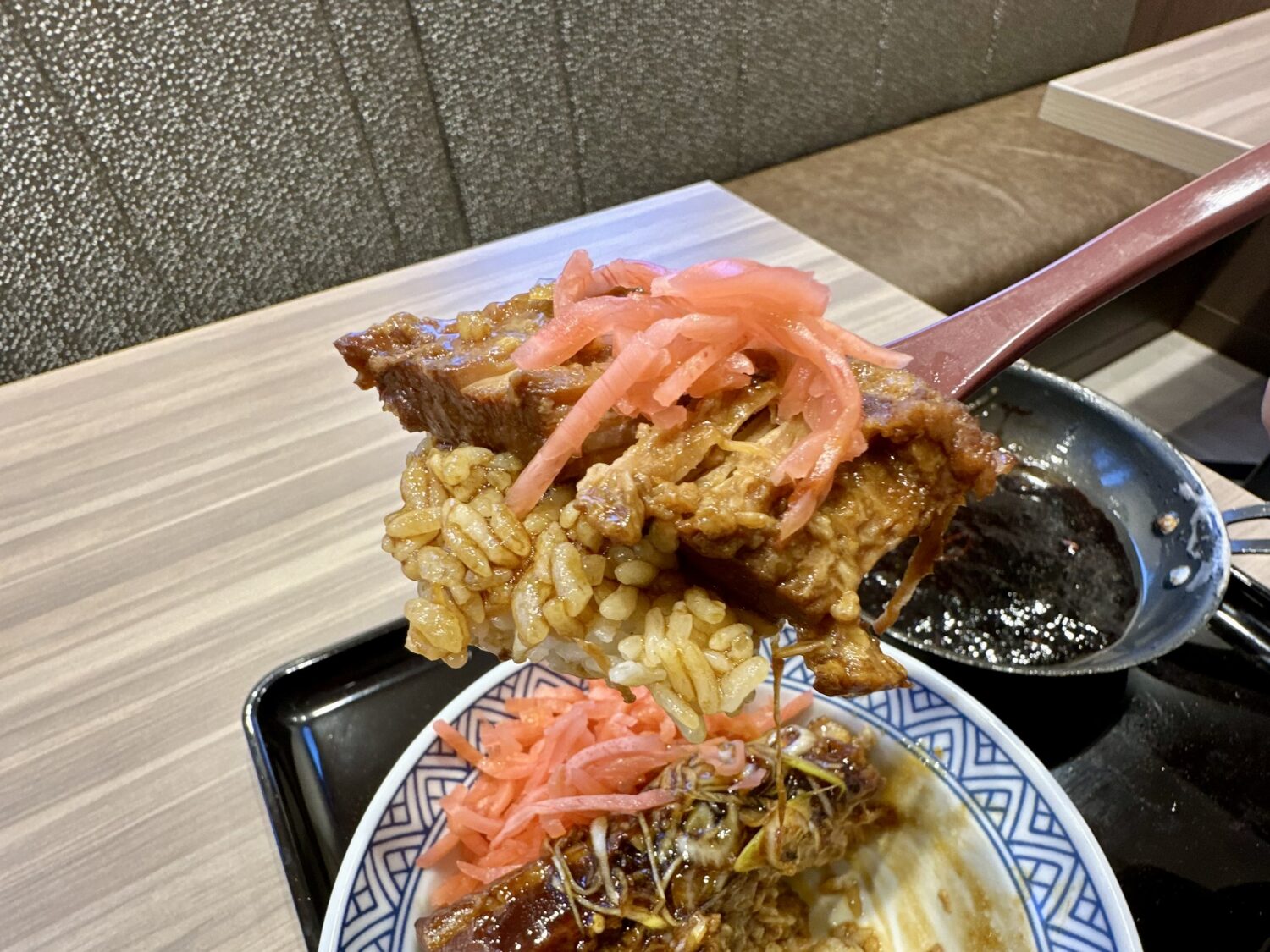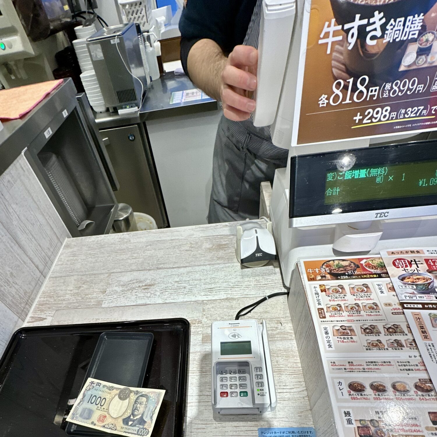 なるほど、最新の吉野家ってのは先会計のベル受け取り式、つまりフードコート然になってしまったってことだのね(˚ଳ˚)