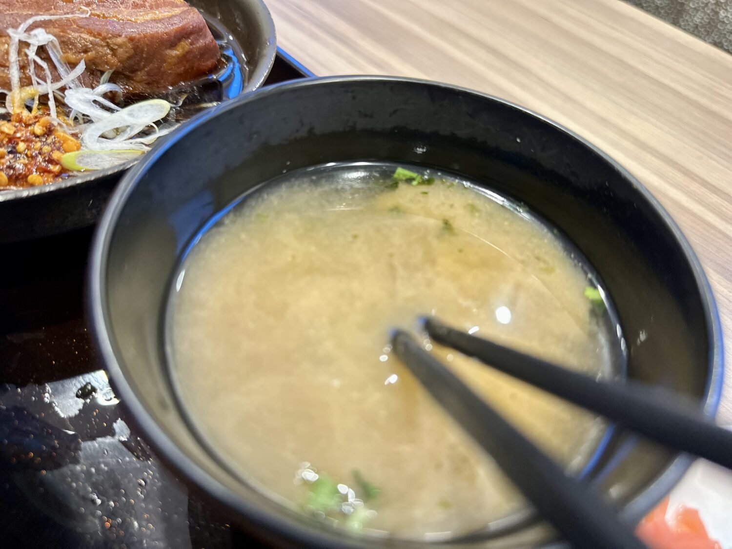 まずは汁とご飯をひと口づつで、徐々に気分を昂らせてゆく