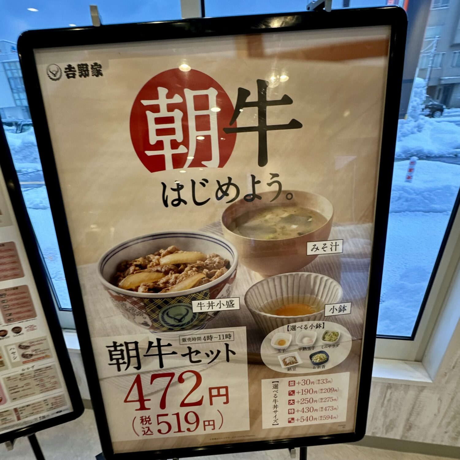 とある雪降る空の下、去年7月に出来たばっかで反対車線から入るの難易度Sな吉野家にハイボールマンが来ましたよっと(((◞( ・ิ౪・ิ)◟