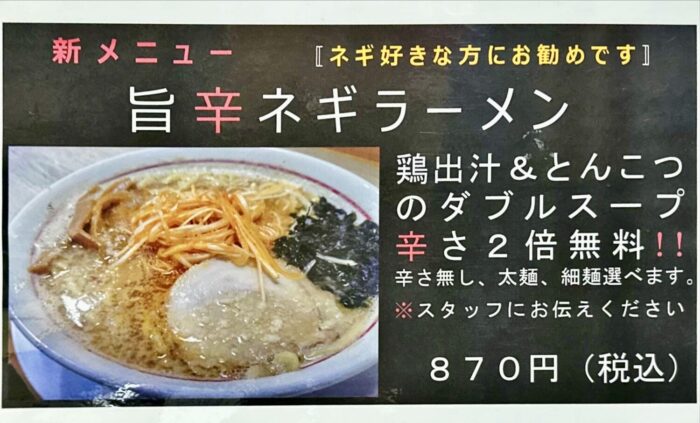 まずはこちら、待望の新作「旨辛ネギラーメン ¥870」