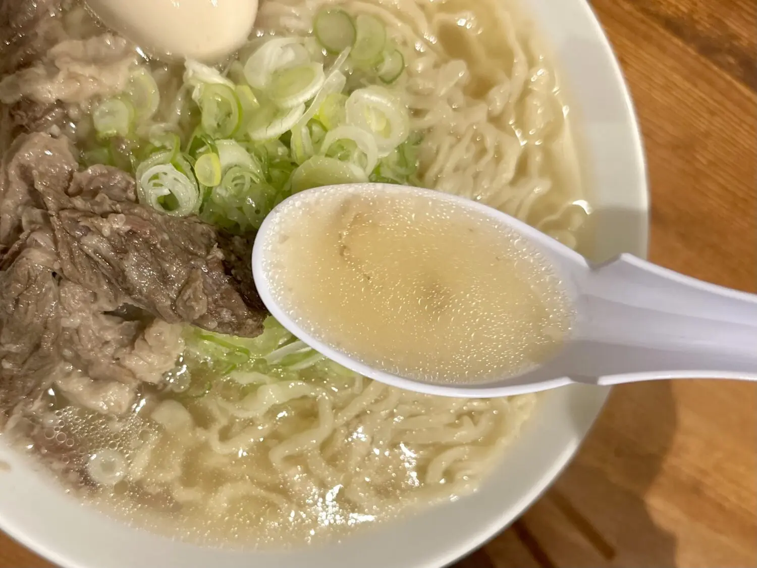 それはアッサリかつドシッとした塩スープに、牛骨の髄から滲み出た旨味のエキスと香りがものすごい