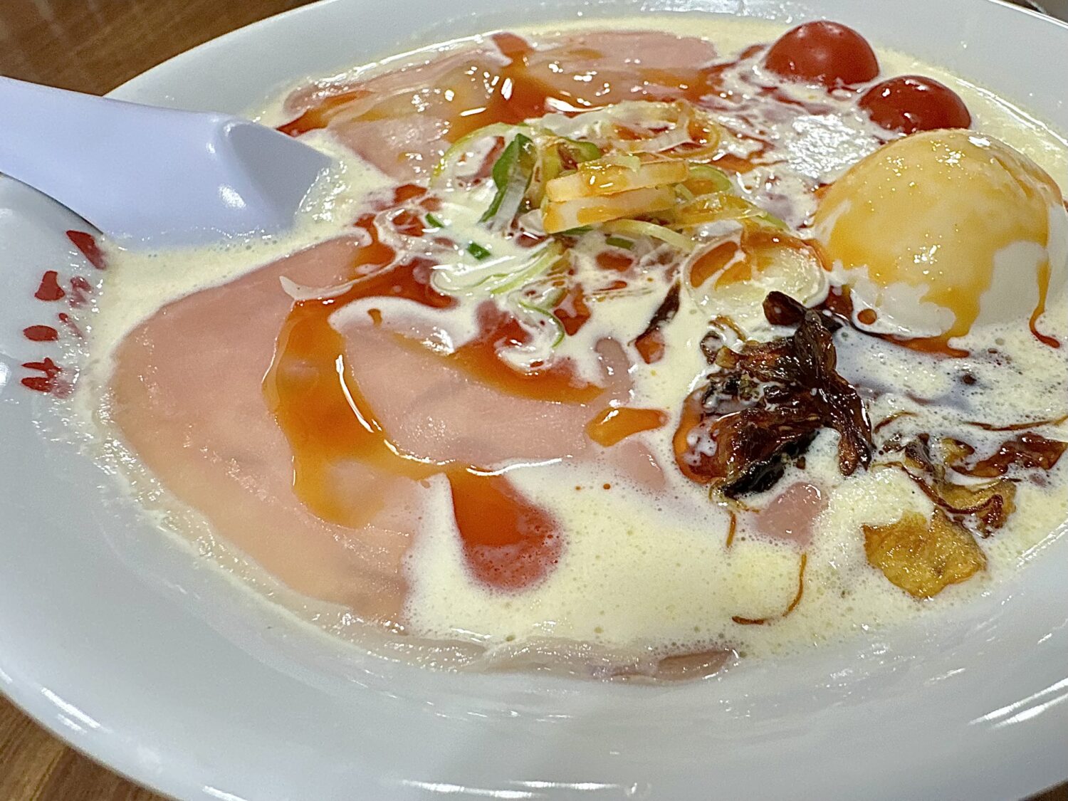 オーダーは「Shiro辛 ¥950」、同店人気の”津軽ラーメン”をベースに生ハム・生クリームを使用したイタリアン仕立ての変わり種「Shiro」に、