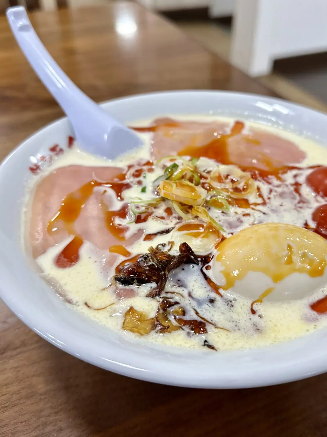 スープが真っ白なだけにススった飛沫がテーブル上に点々と目立っちゃう。