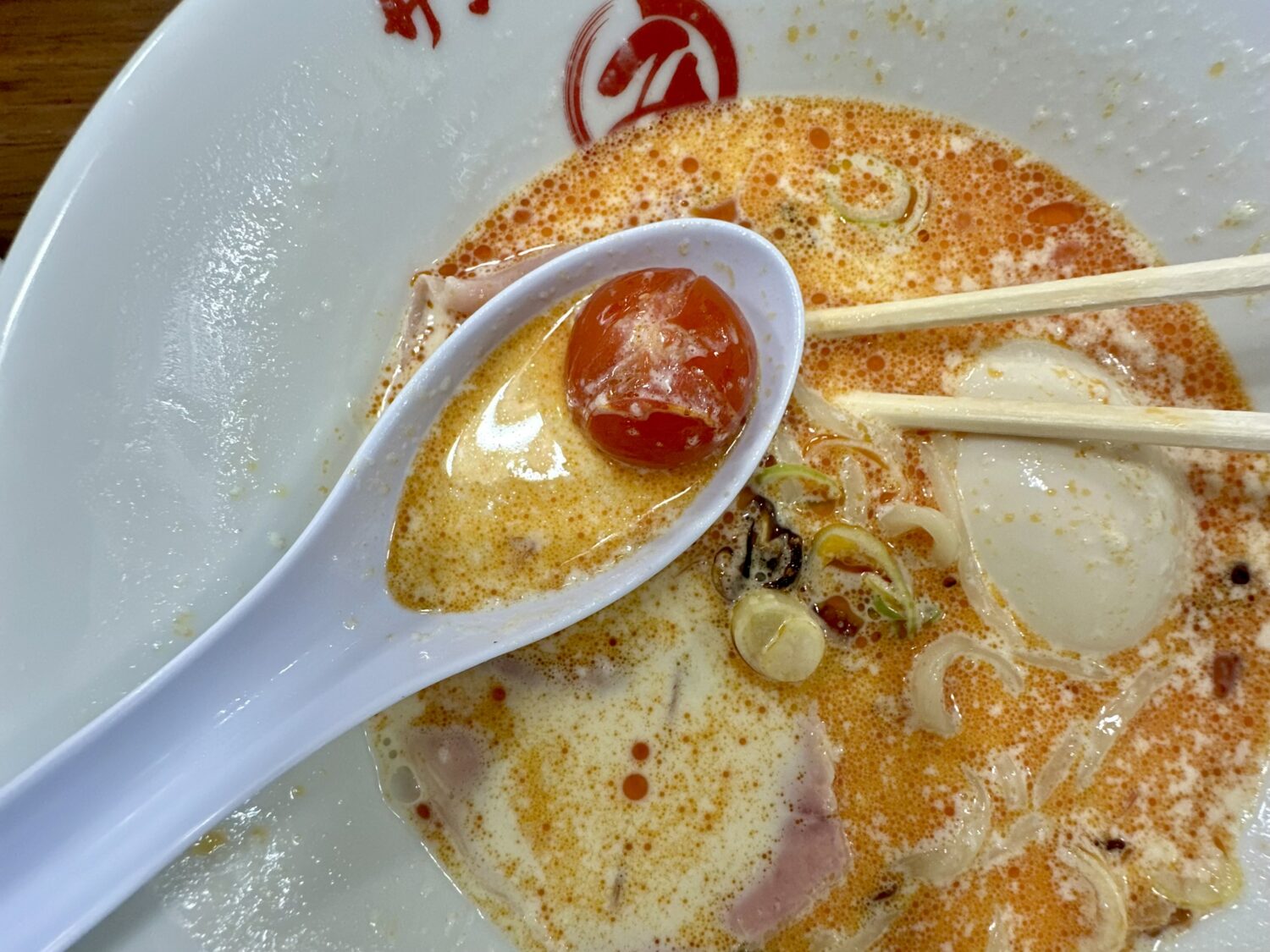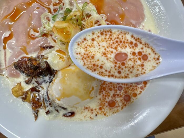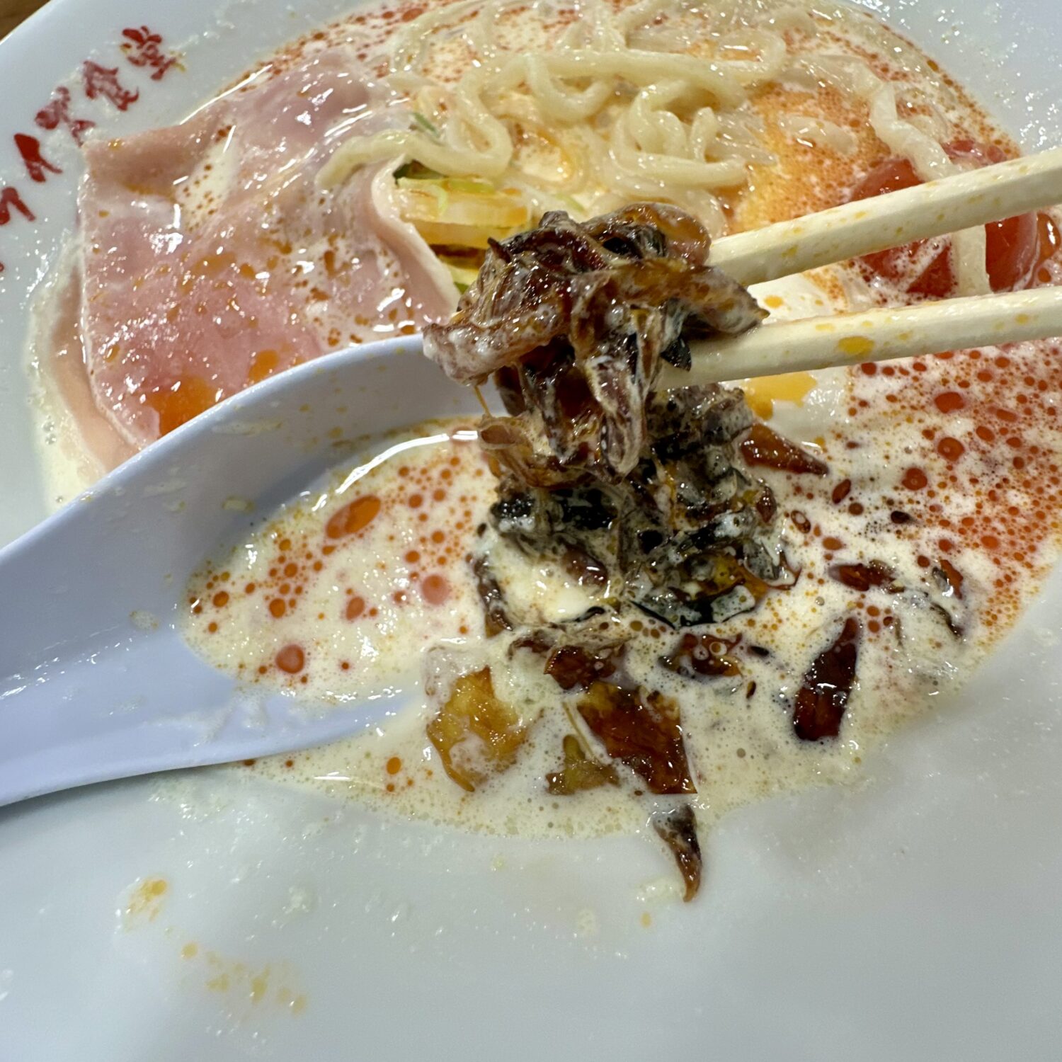 ちなみにこのラーメン語るうえで欠かせないのが焦がしネギ、独特の香ばしさとヌルッとした舌触りが存在感を見せつける