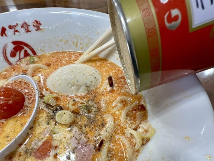 味変に選んだのはテーブルコショー、でも本当はデッカいミルタイプの粗挽きコショーとかあったら似合うべねー( ͡° ͜ʖ ͡°)