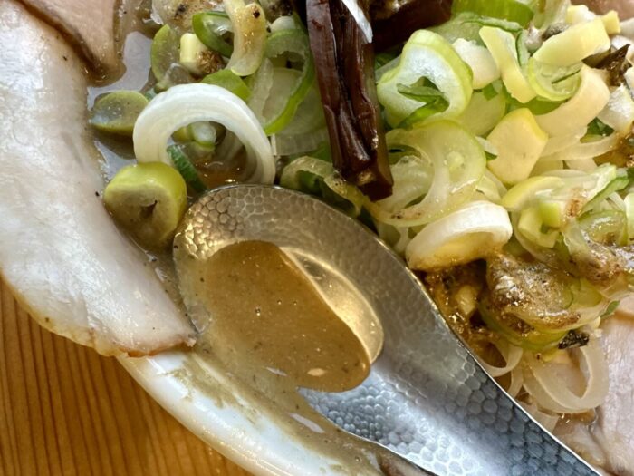 仕上げにブッ掛けられる特濃ニボペーストがまるで黄金みたいにキラギラと