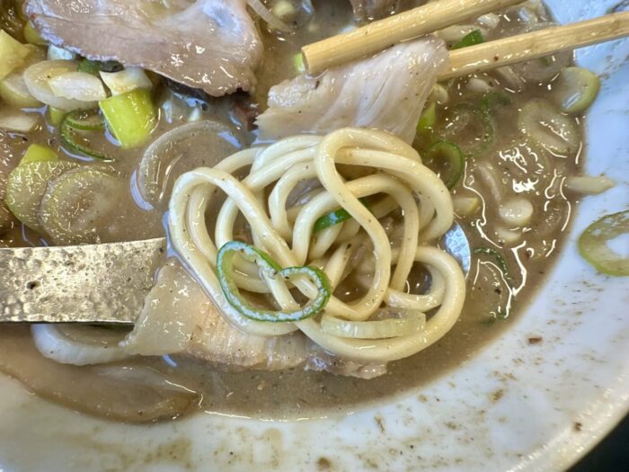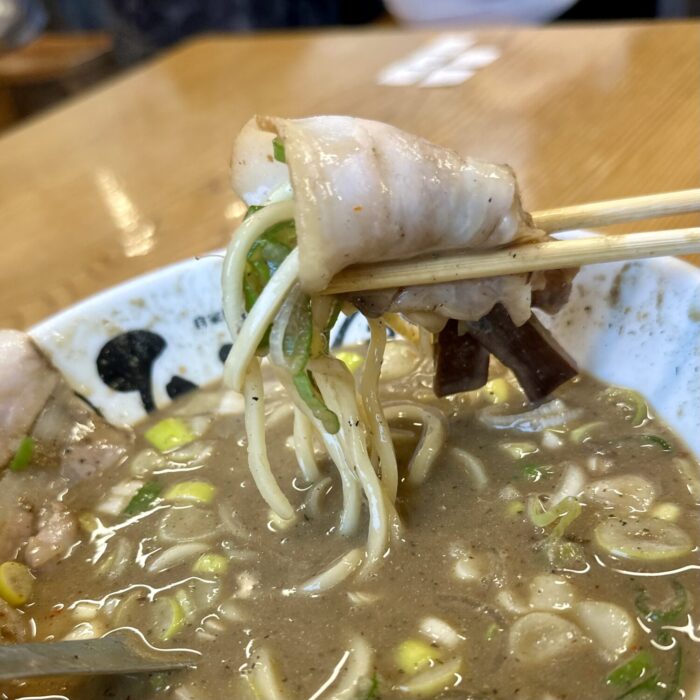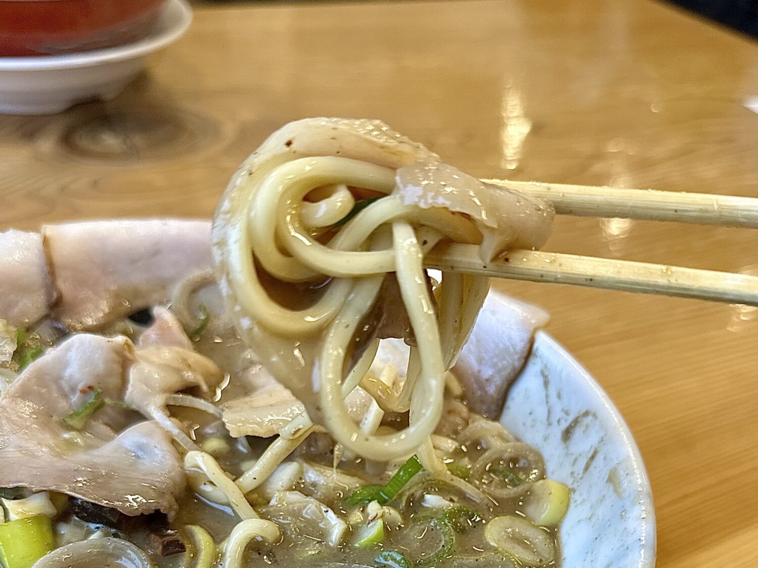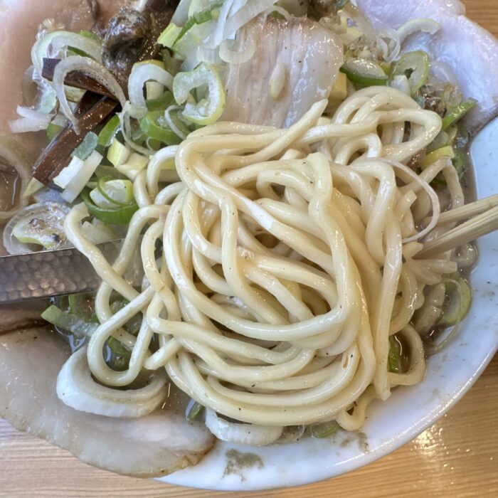 ヒラコヤ自慢の自家製麺、スベスベでモチモチで溢れる小麦感がたまらない珠玉の中太くって長いやづ
