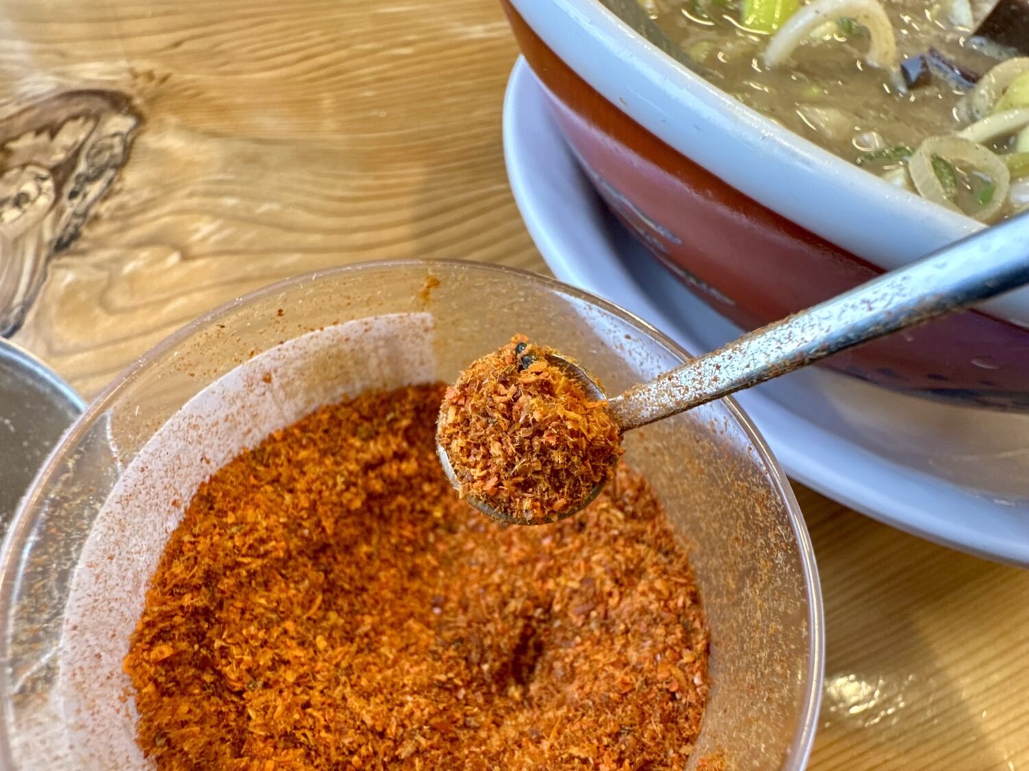 味変のオススメはやっぱり特製ニボ唐辛子、