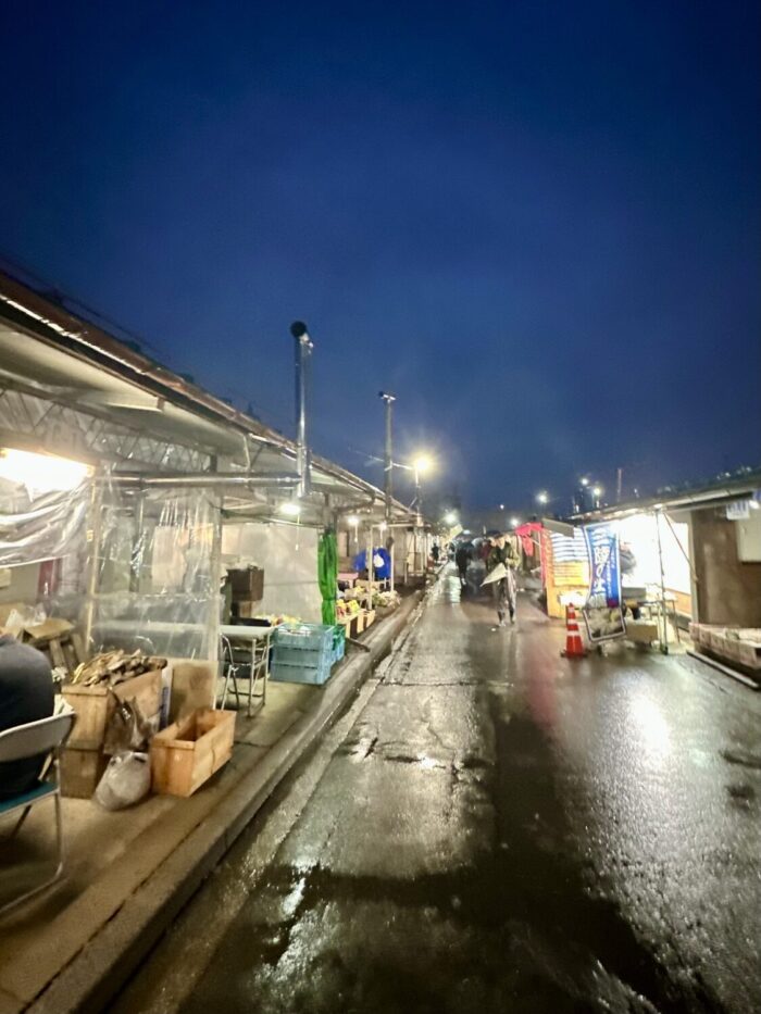 驚くべきはこのミコダ朝市、なんと週休1日っていうハードスケジュールで回ってるってこと、つまり年間300日以上朝の暗いなかからやってるっていう(;´Д`A