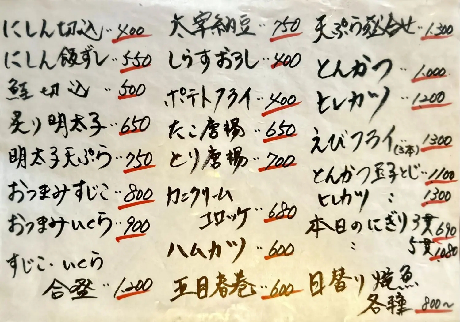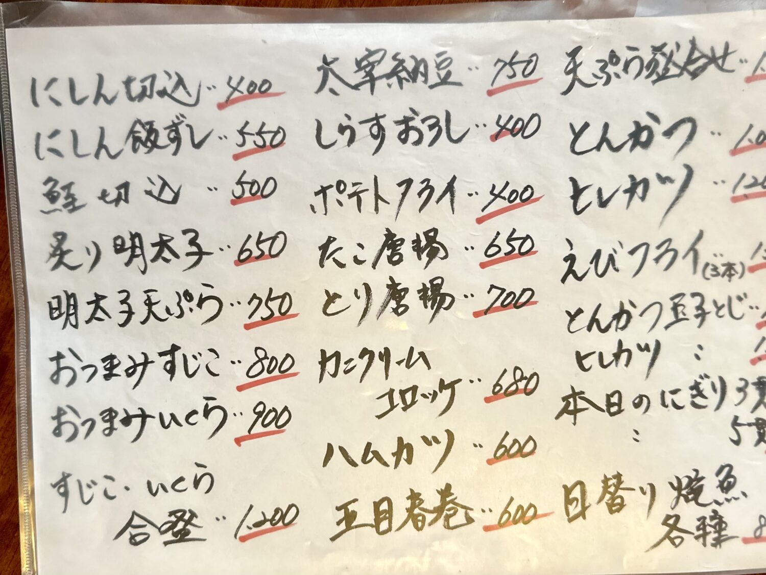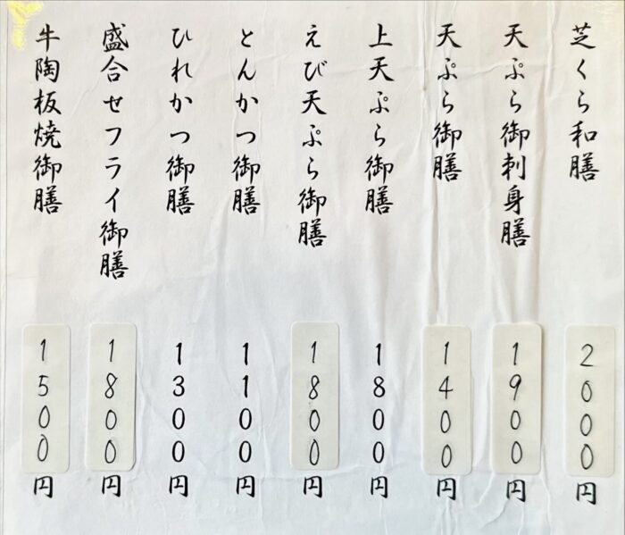 お品書き