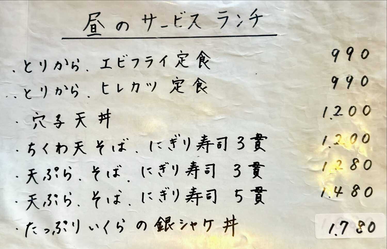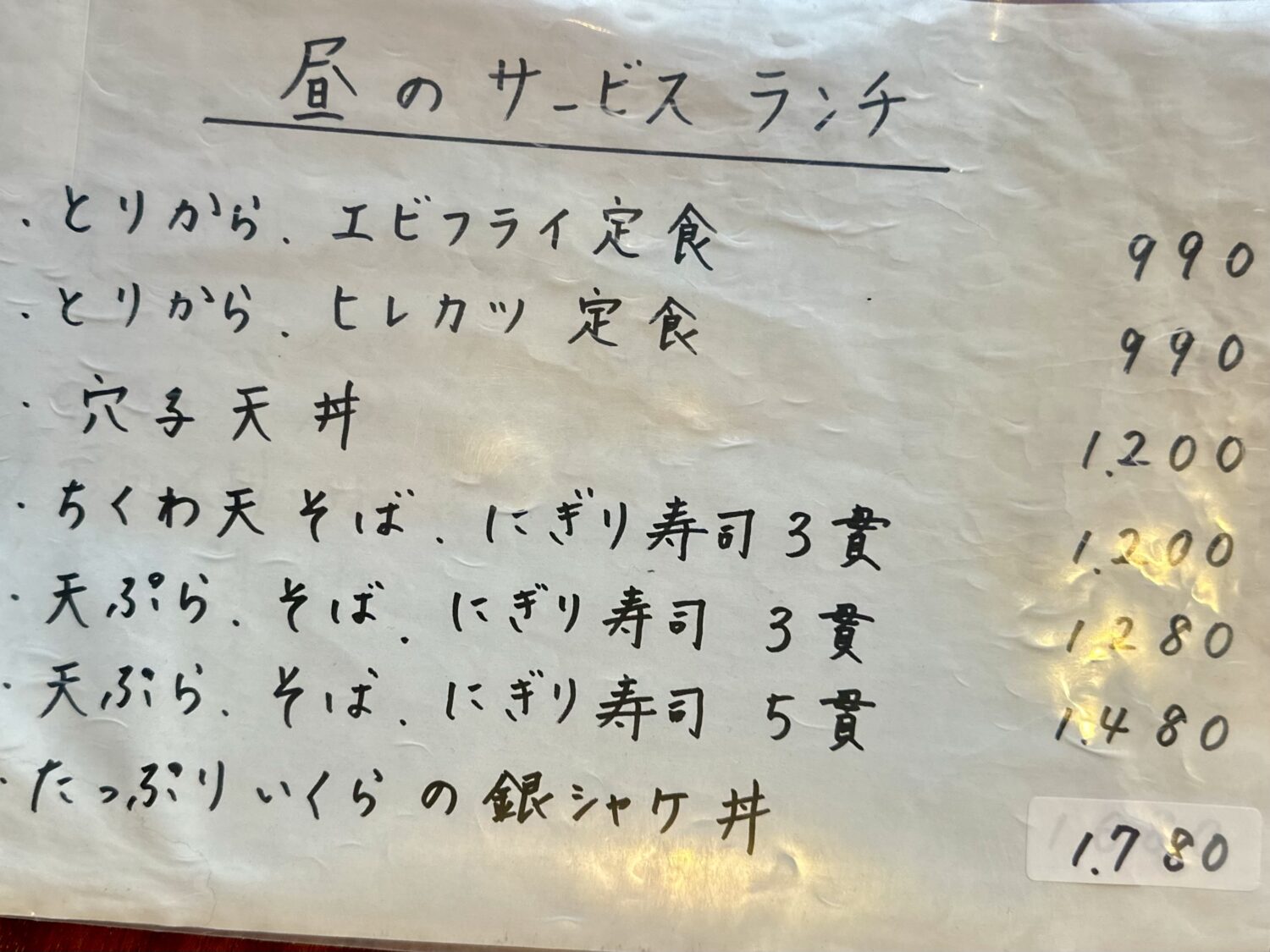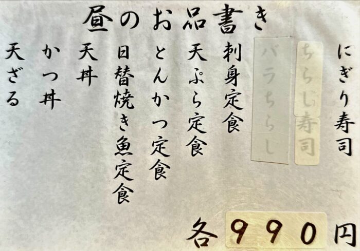 ますこちらオツレサマチョイス品、オトクなランチメニューから「天丼 ¥990」