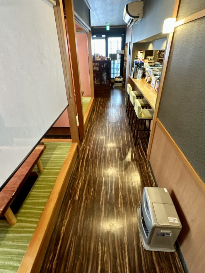店内は縦長スタイル、廊下を挟んで厨房側と客間側みたいなレイアウト