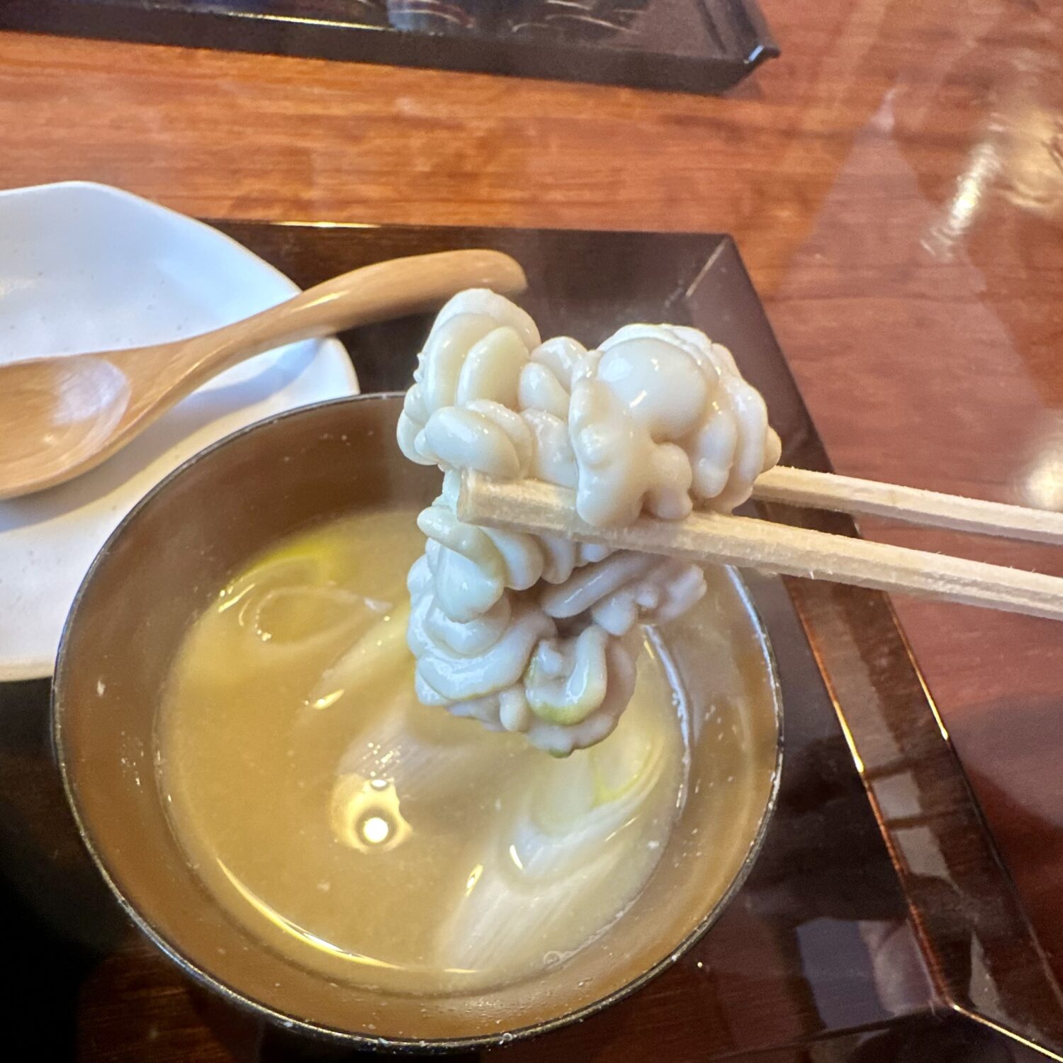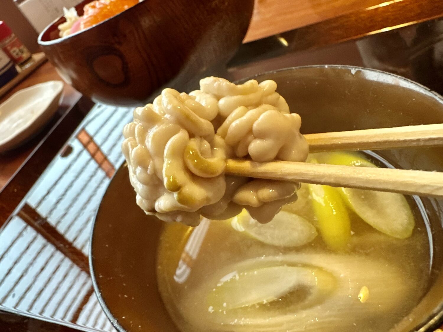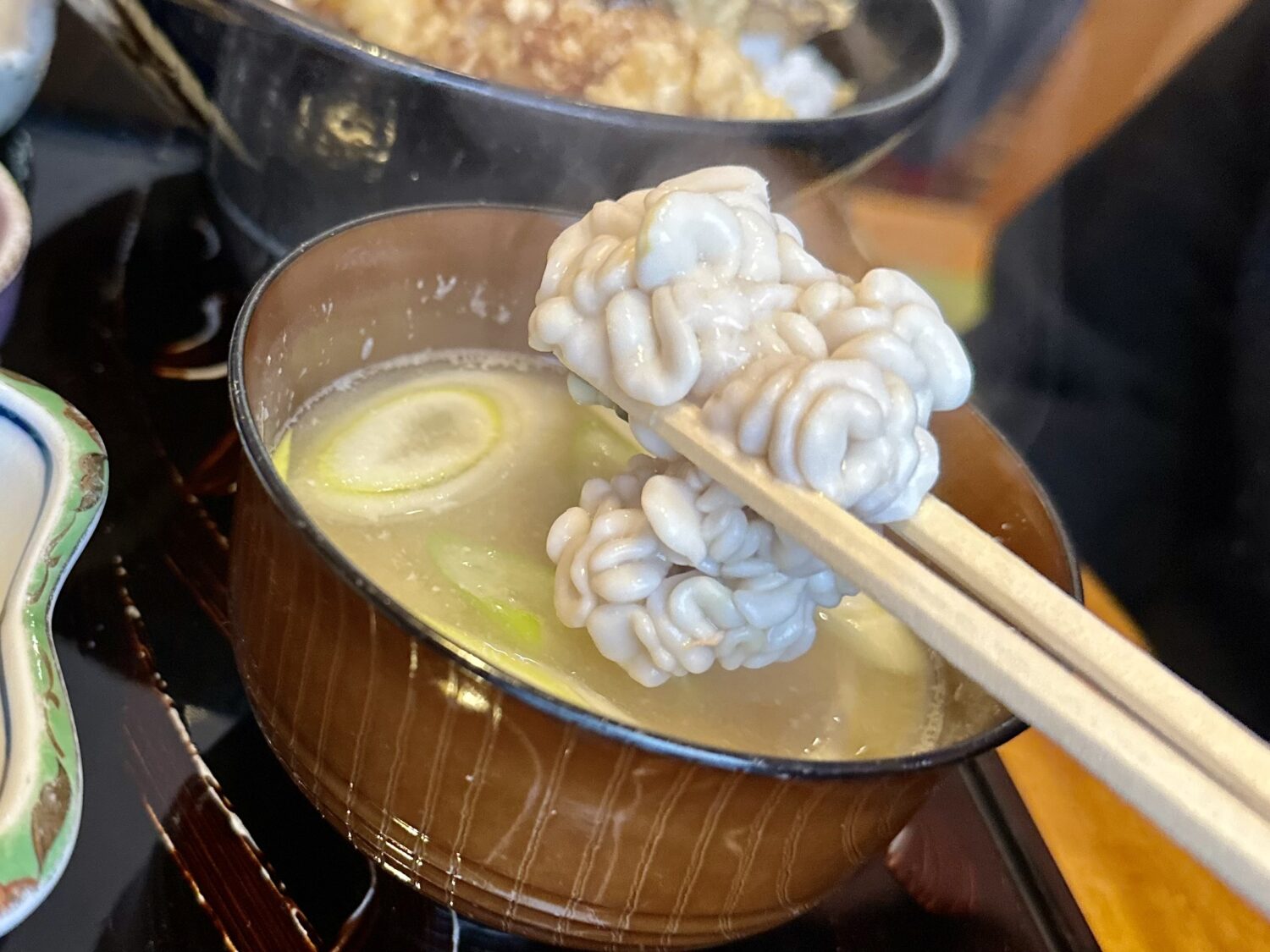 店「あのぉ、今日特別にプラス150円で味噌汁を白子の汁物に変えれますけどぉ」、オツレ「オナッシャスッ!」、店「ひっ、ひぃぃいいぃいぃ」