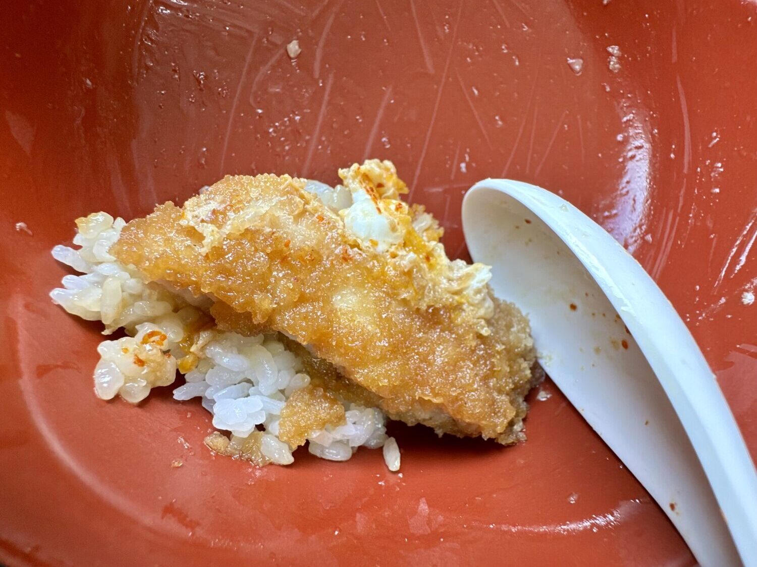 だから次くるその時まで覚えとこう、このカツ丼の隅から隅までの魅力をこの舌といろんな粘膜記憶に刻み込んで、、