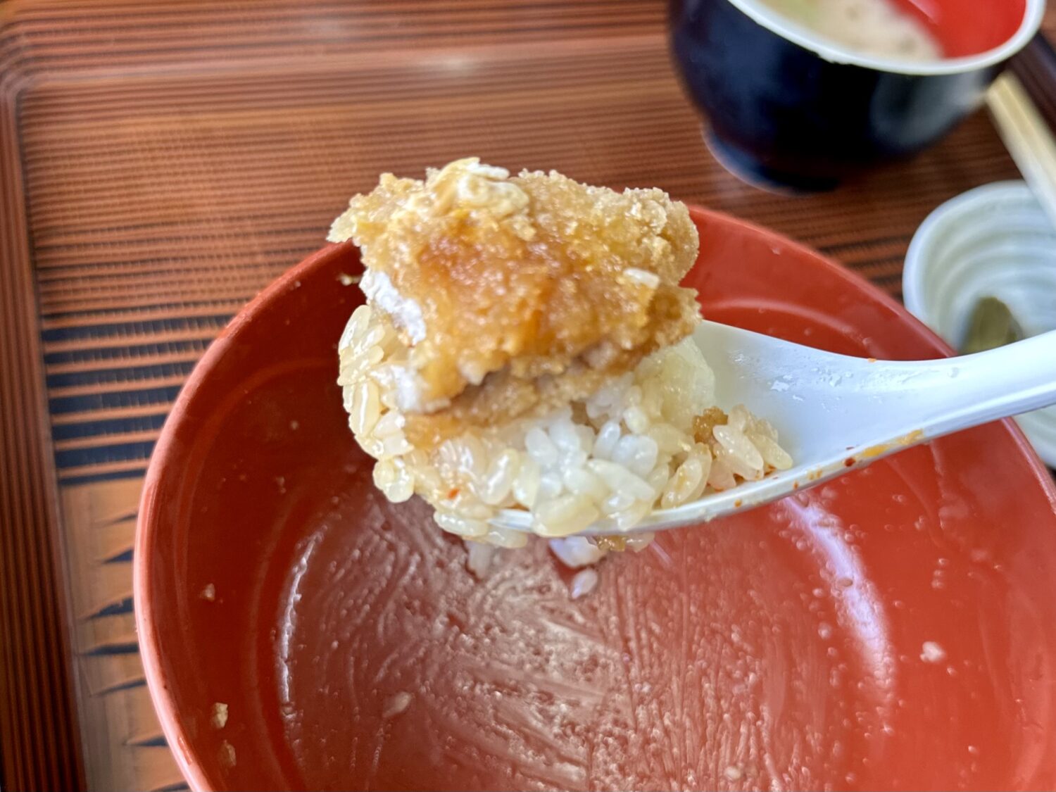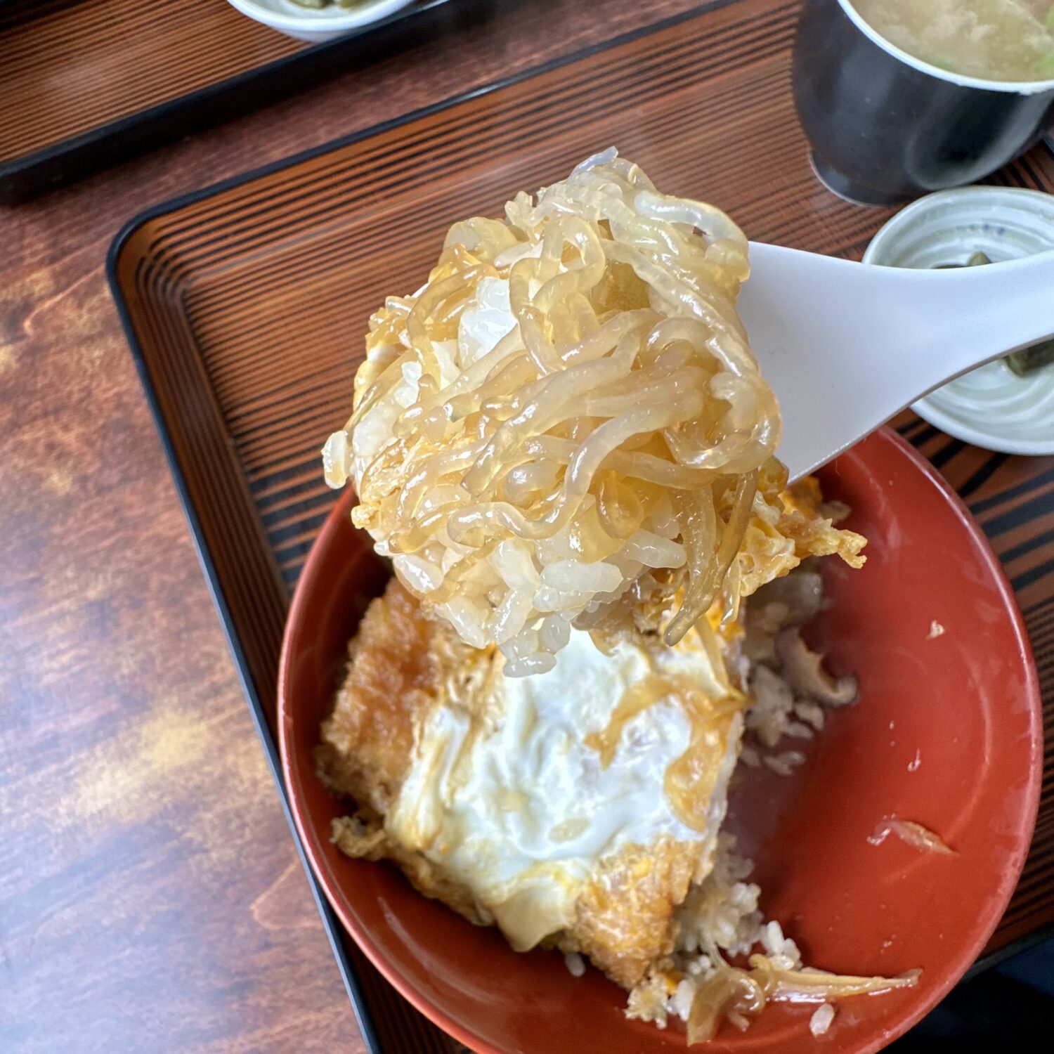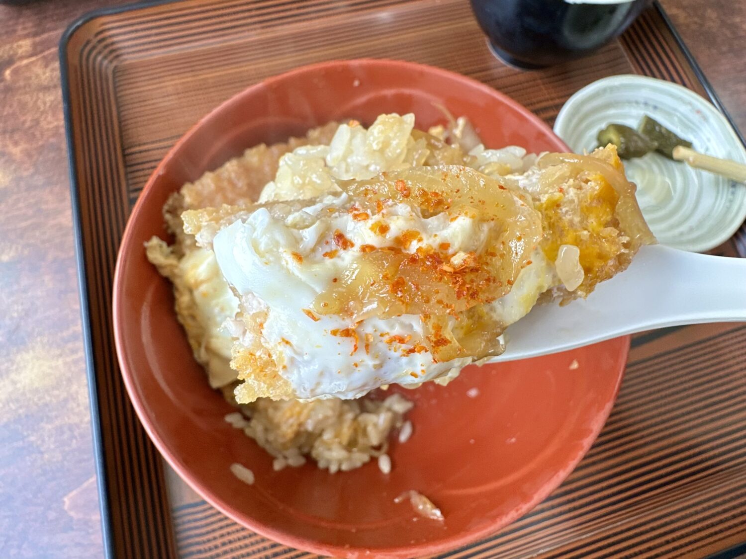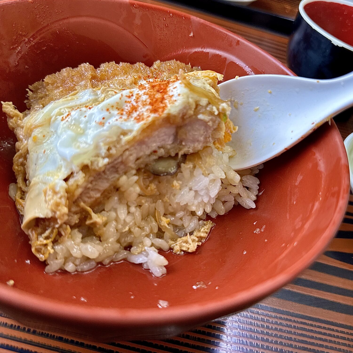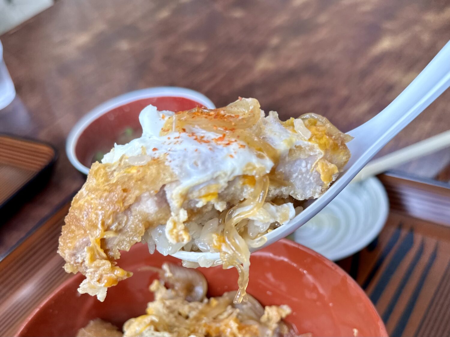 だから次くるその時まで覚えとこう、このカツ丼の隅から隅までの魅力をこの舌といろんな粘膜記憶に刻み込んで、、
