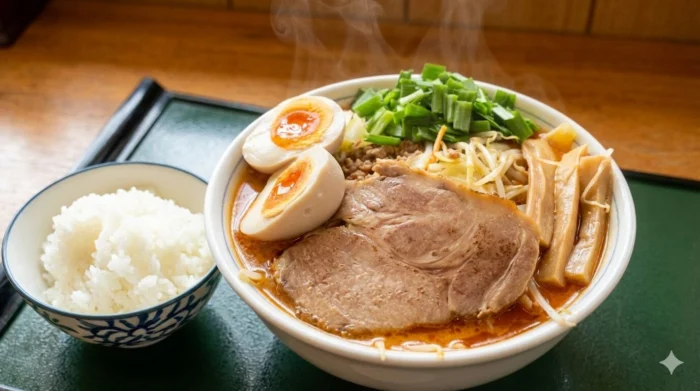 藤崎339号線沿い【中華そば つしま】の野菜モリモリ「台湾タンメン」と今日もサービスライス