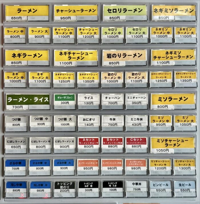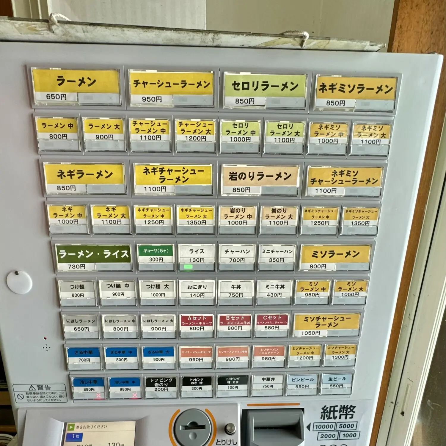 まず相対すべきは入ってすぐ右手に置かれた券売機、メニューの多さも鑑みて店入るまでにどれだけ心決めて入れてるかで勝負が決まる( ತಎತ)