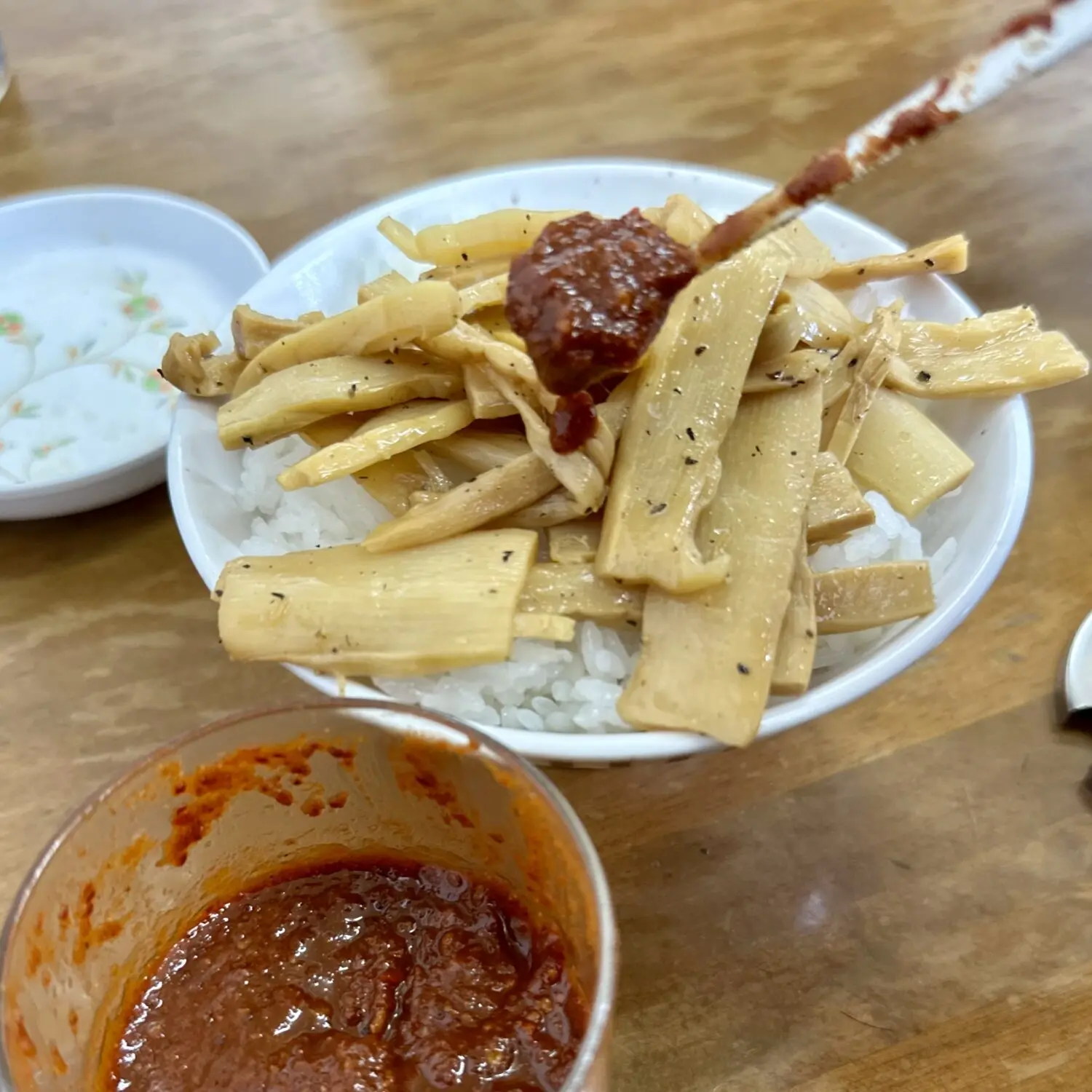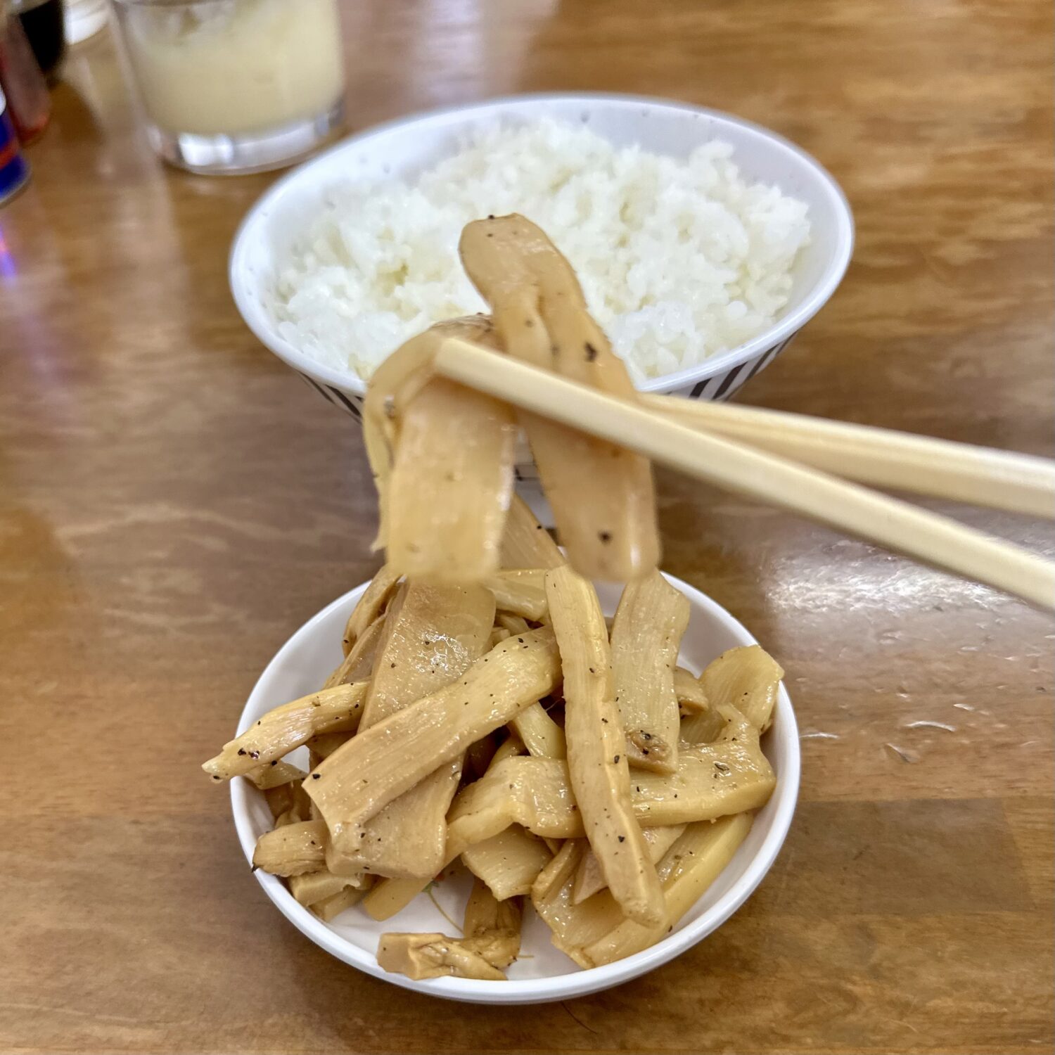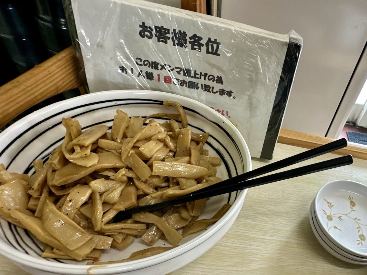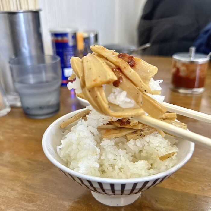 黒石ラーショ名物のサービスメンマだでばッ!、2回目からは有料になるの見越して1回目でどこまで盛れるかで勝負決まる、恥とプライドがガチンコ相撲のやづだでばッ!( ;:⊙;д;⊙)