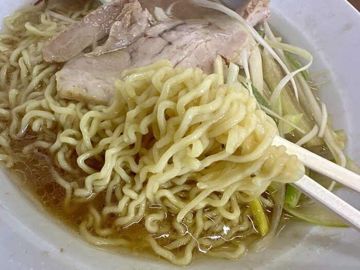 中盛サイズに頼んだ麺は中細ちぢれ、若干の柔らか仕上げはきっと消化良くなれよぉ、って優しさに違いなく。