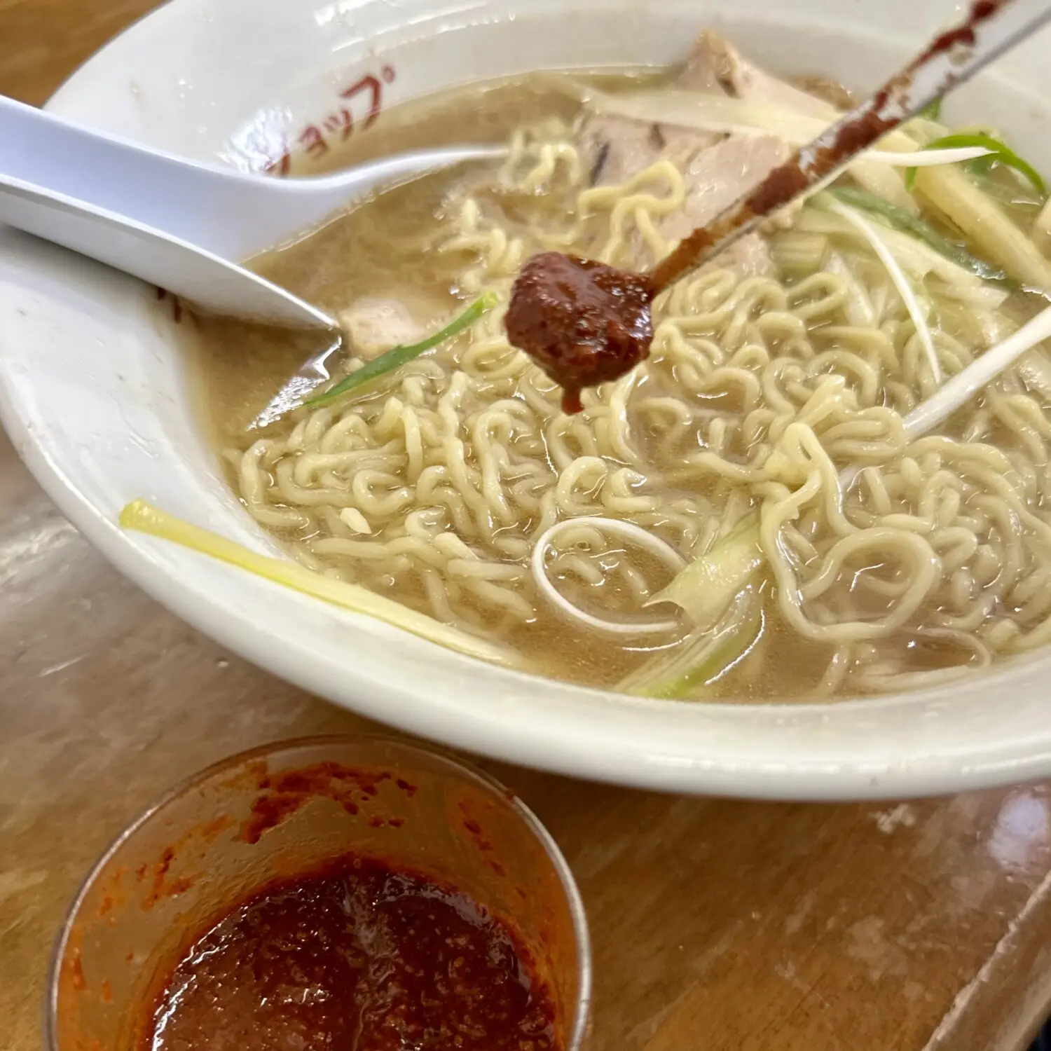 オイリーかつサラリと飲める豚骨醤油スープはこの日も嫌味なしにちょんどよく、自分好みに味変していく楽しみもありあり(`・⊝・´)