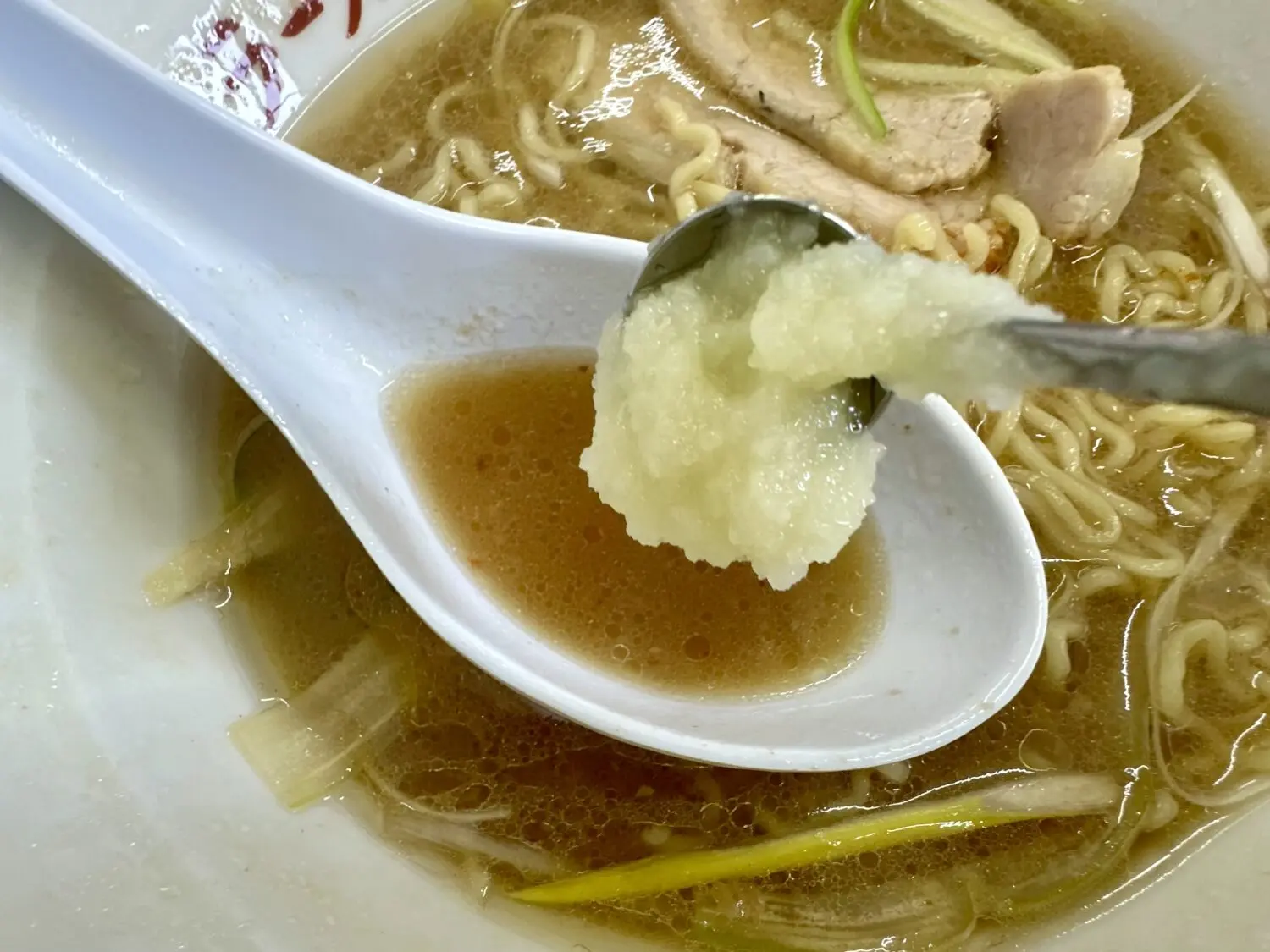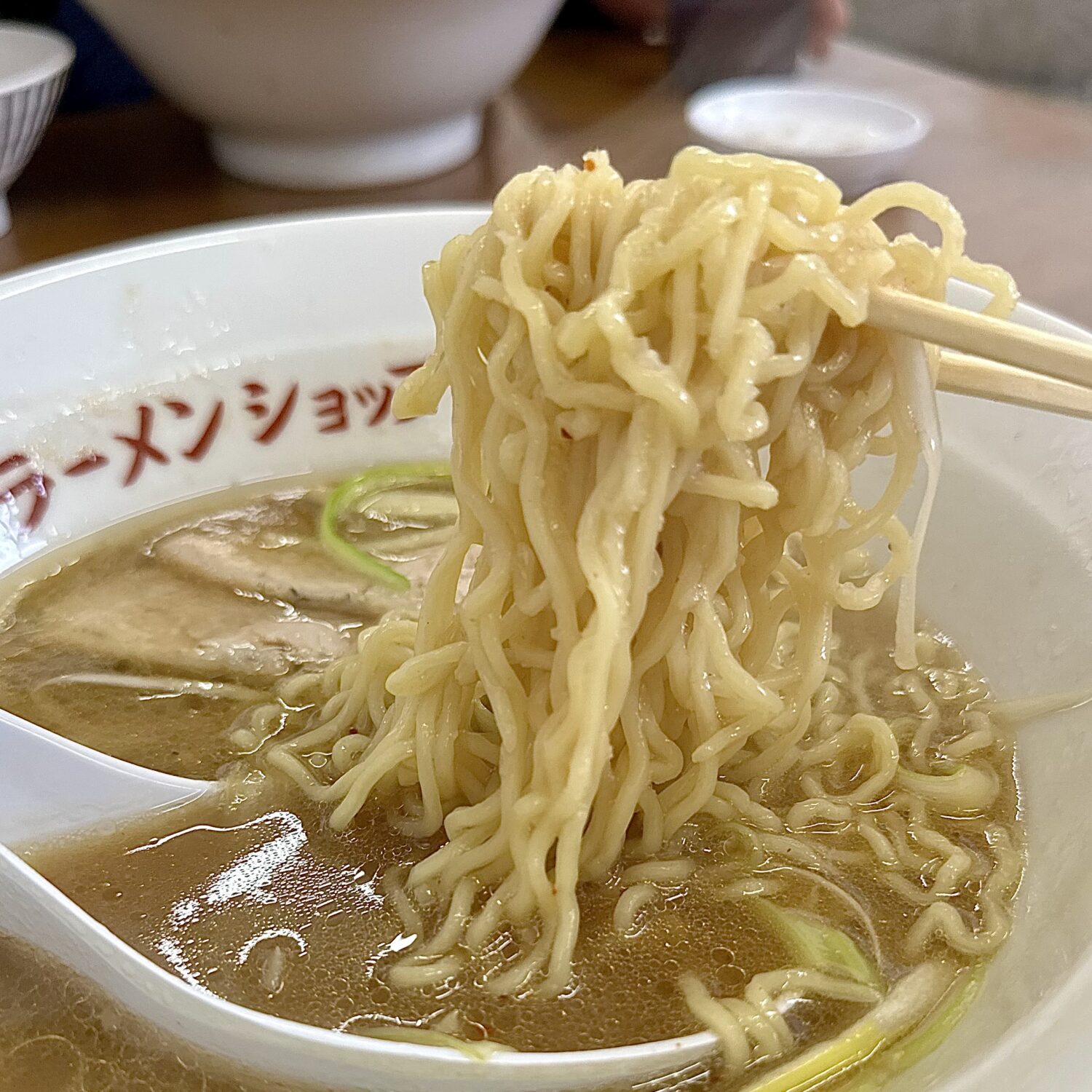 ラーショ自慢の豚骨醤油スープに専用オイルで仕上げたセロリをオン、ふわっと香るセロリガマリに鼻鳴り腹鳴り喉も鳴る。