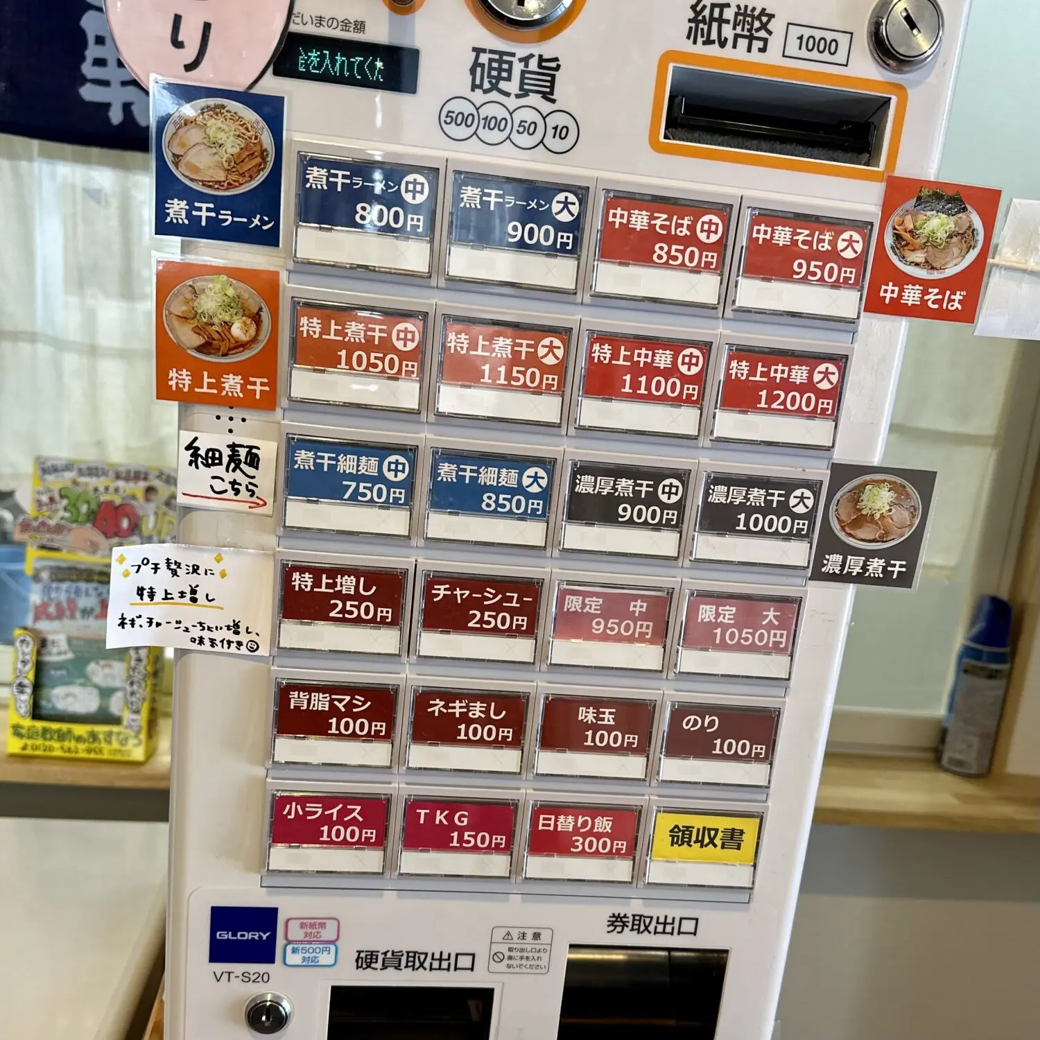 さーて今日は何喰うがなぁ、ってか券売機の限定ボタンってば今やってらんだが書いてねはんだ分がんねなぁ、