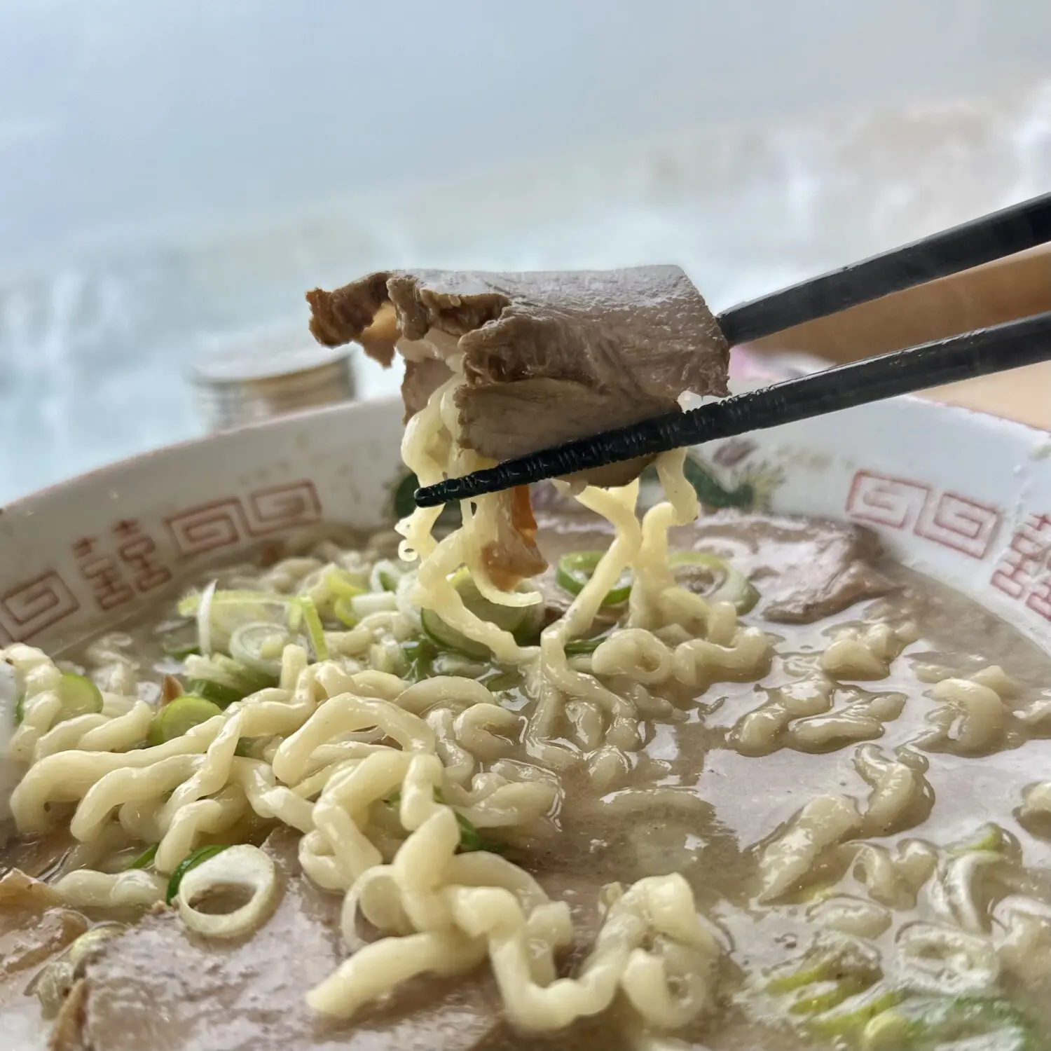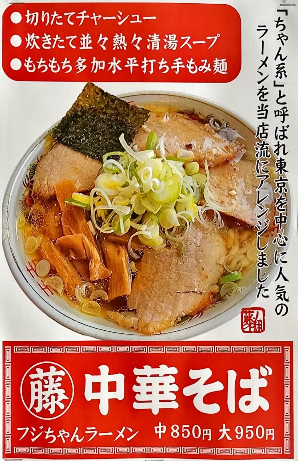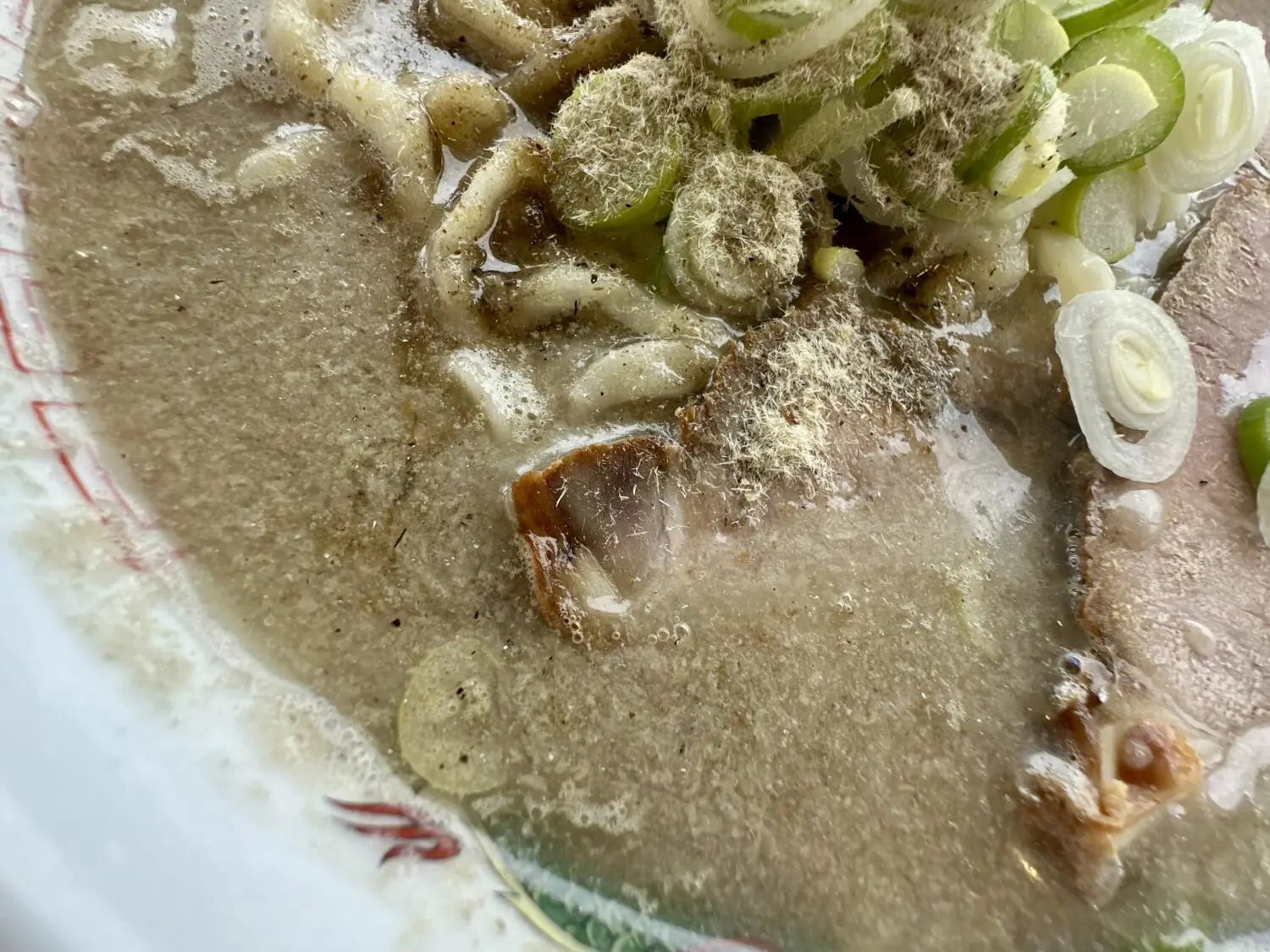 乗せ具はチャーシューいっぱいネギいっぱいにメンマもしっかり、仕上げの魚粉がまた頼もしく