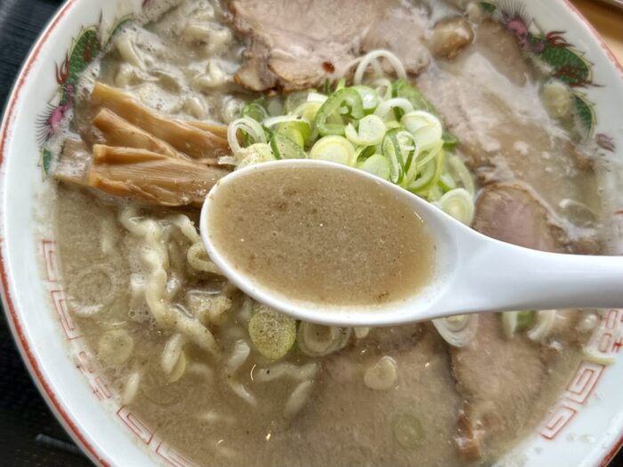 まるで某タカハシをライトかつオイリーにしたかのようなスープ。