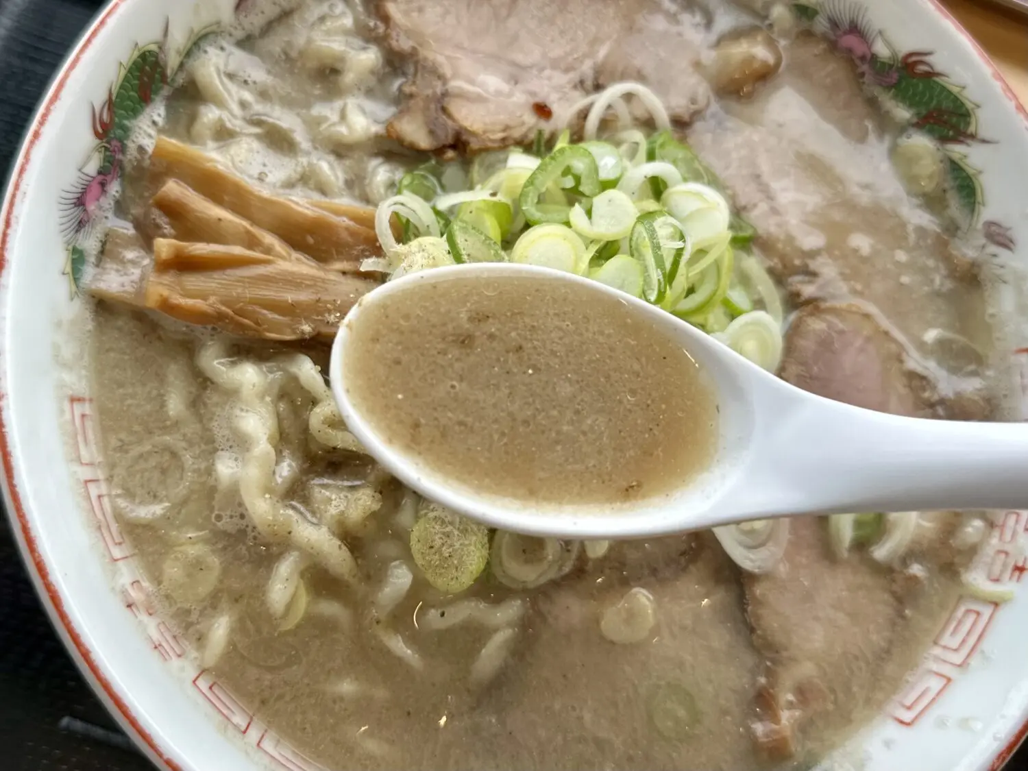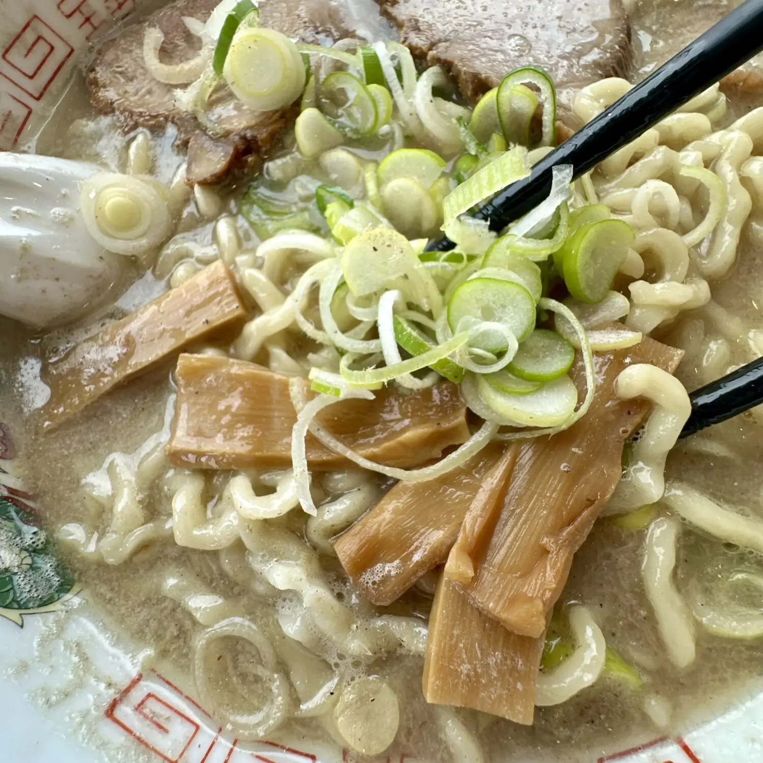 たっぷりネギも変に辛くないしメンマも変に酸っぱくないのはさすが幡龍グループ、乗せ具にも一切の妥協なし