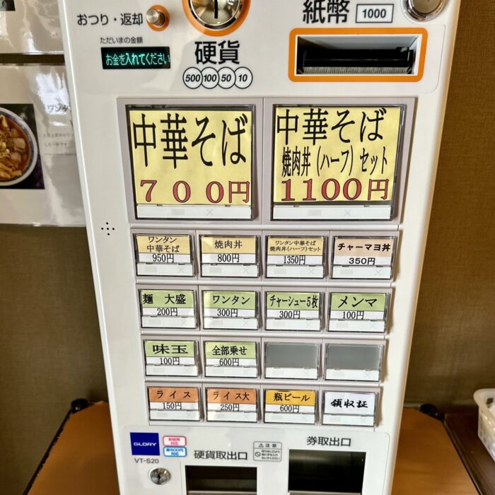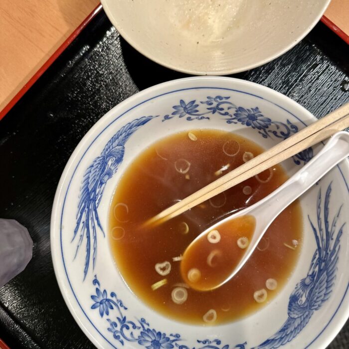 つまりあっさり煮干しオンリーのワンスープっていう潔さ、からのオーダー【中華そば・焼肉丼(ハーフ)セット】税込1,100円。