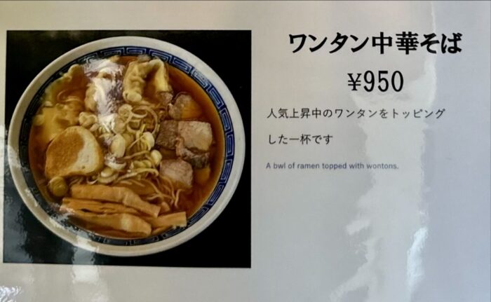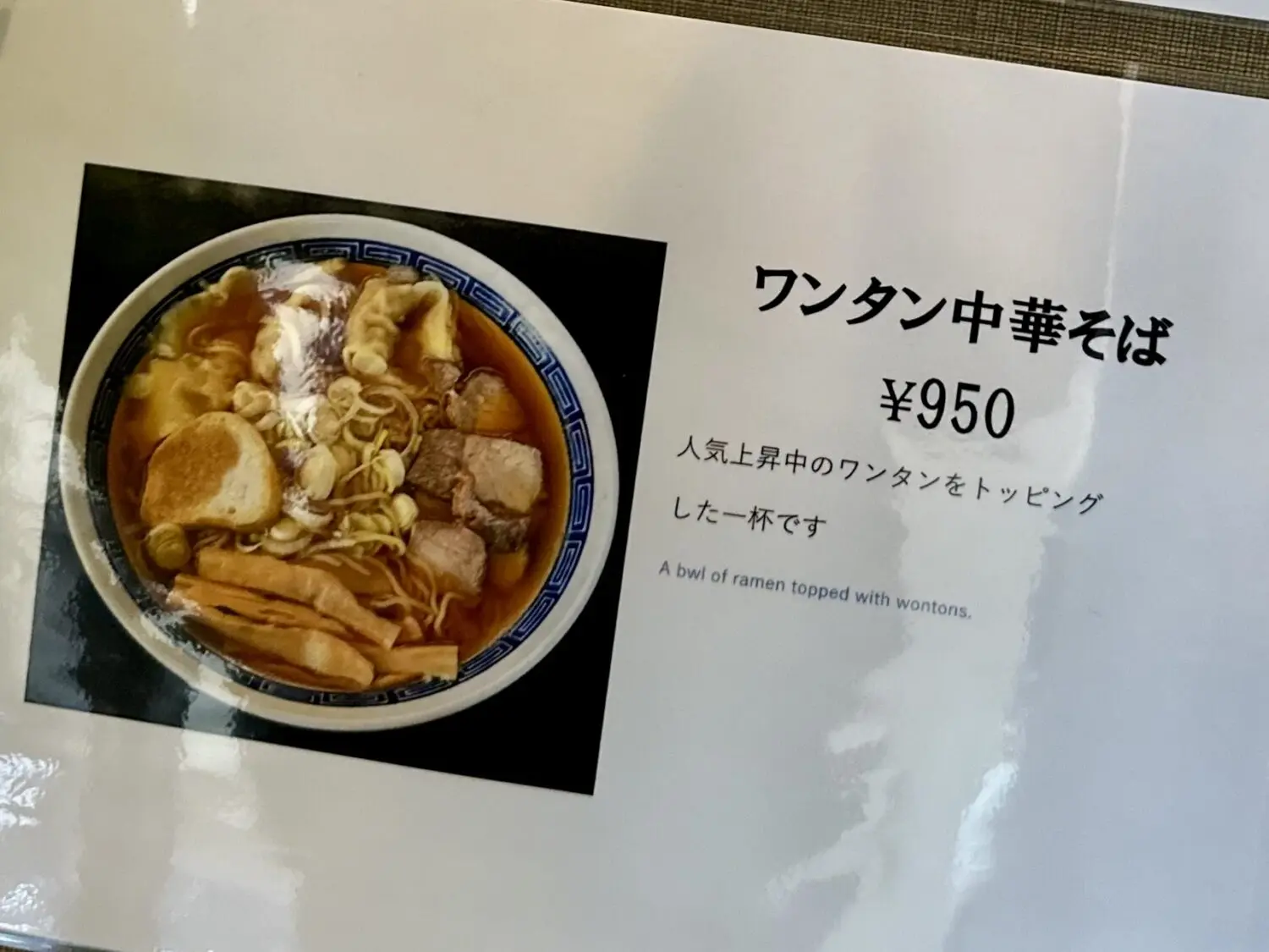 まずこちらオツレサマ注文品「ワンタン中華そば ¥950」