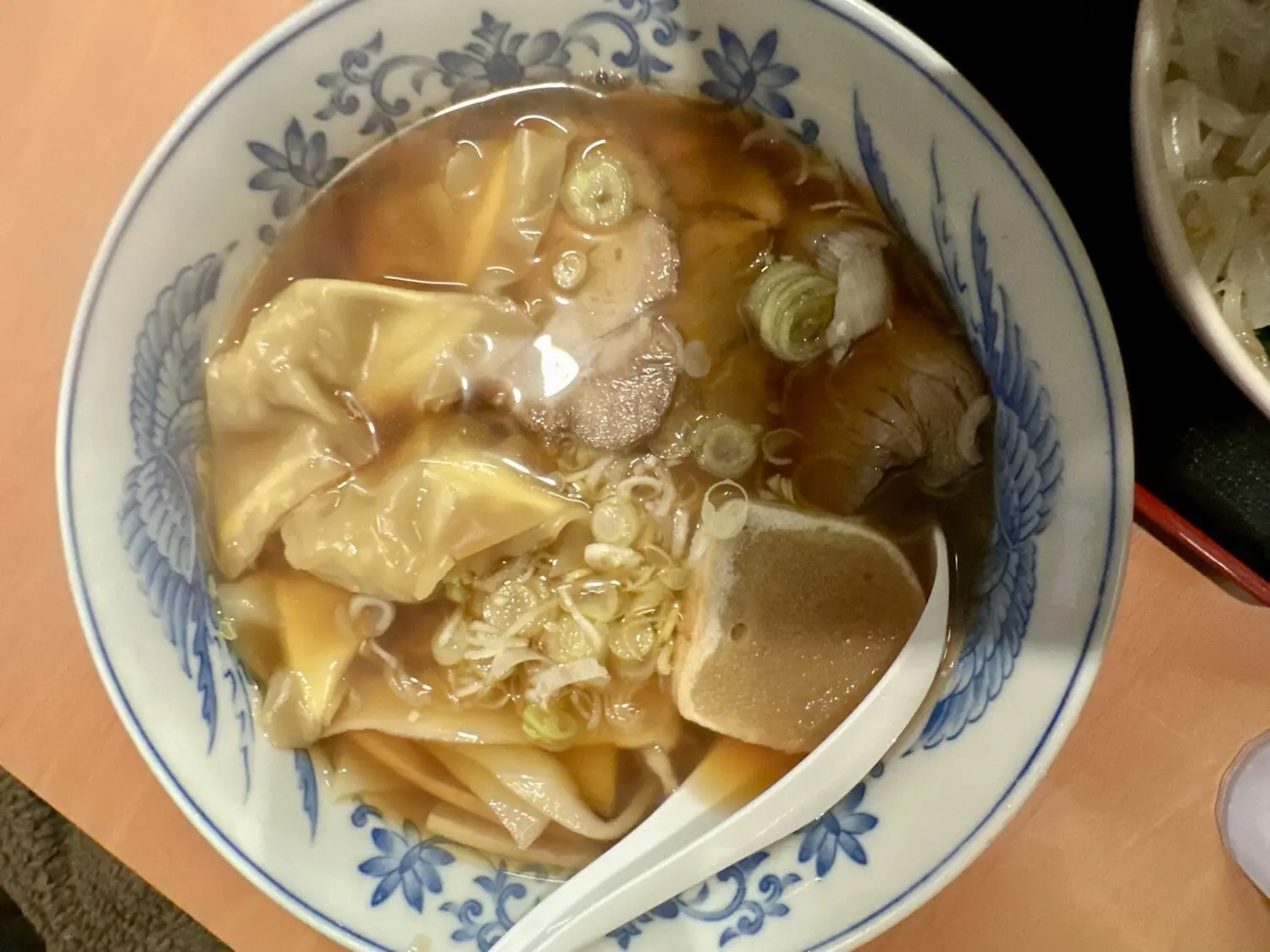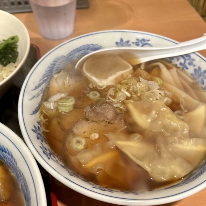 いつの間にかコッチのドンブリ入ってたワンタンは、テュロンとした食感でそれはそれはとても美味しいやづでした