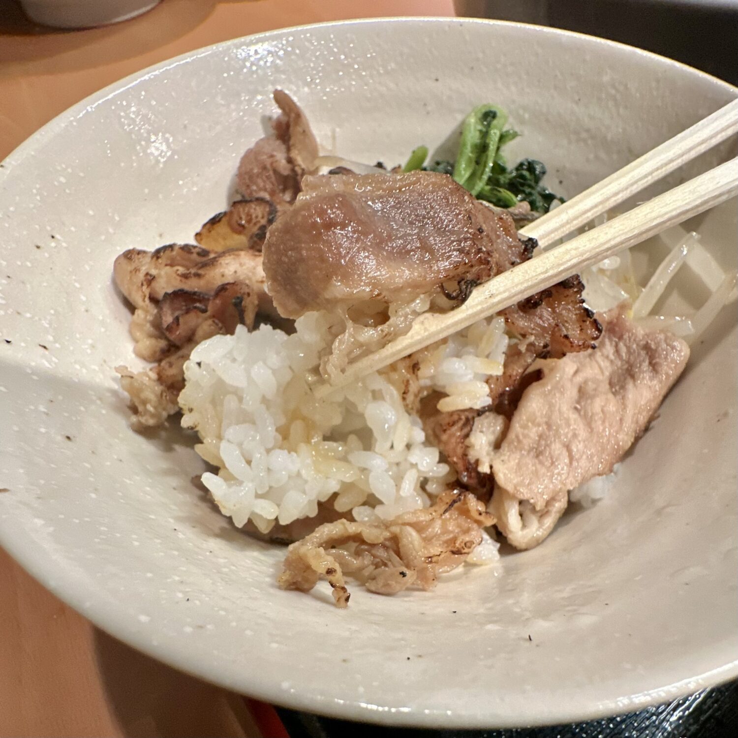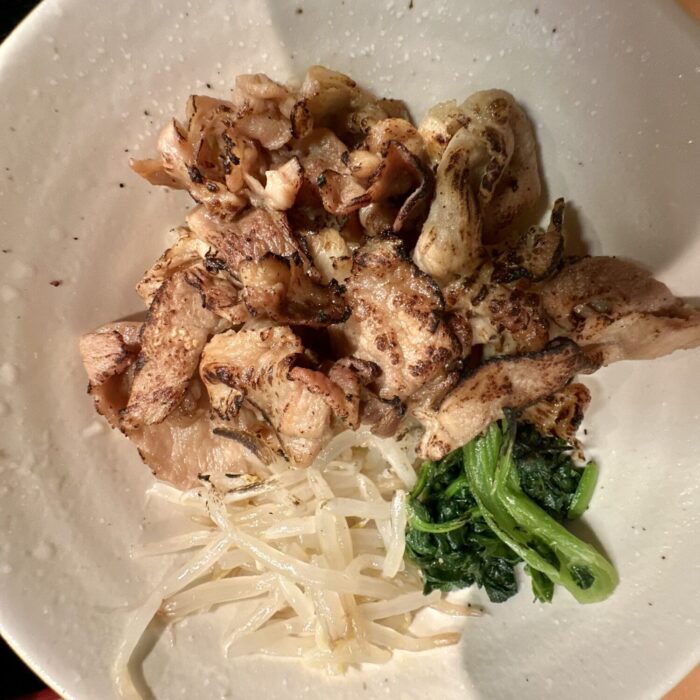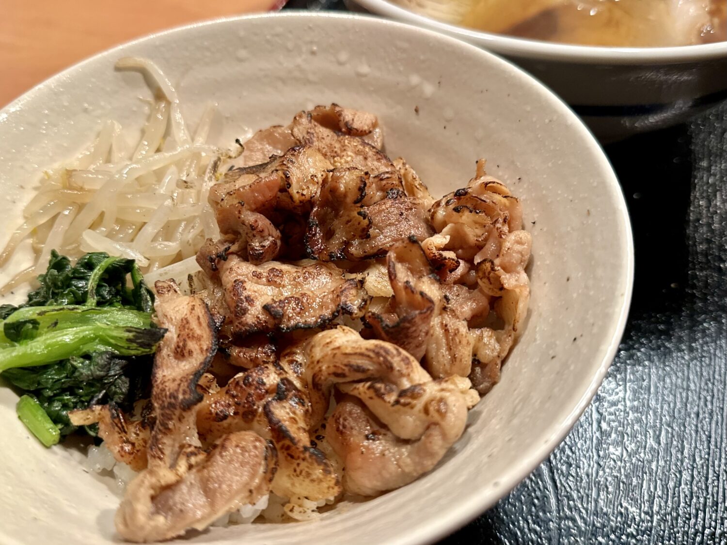 バーナー炙りの豚肉はカリッとしつつコゲっとしつつ、油断してガヅガヅ喰えば喉詰まる系