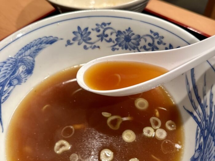 優っさしい煮干しの旨味と特製カエシからくるほのかな甘味、そして配膳直後からぬるめの温度でオモテナシ