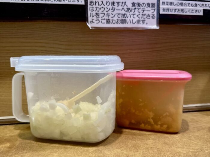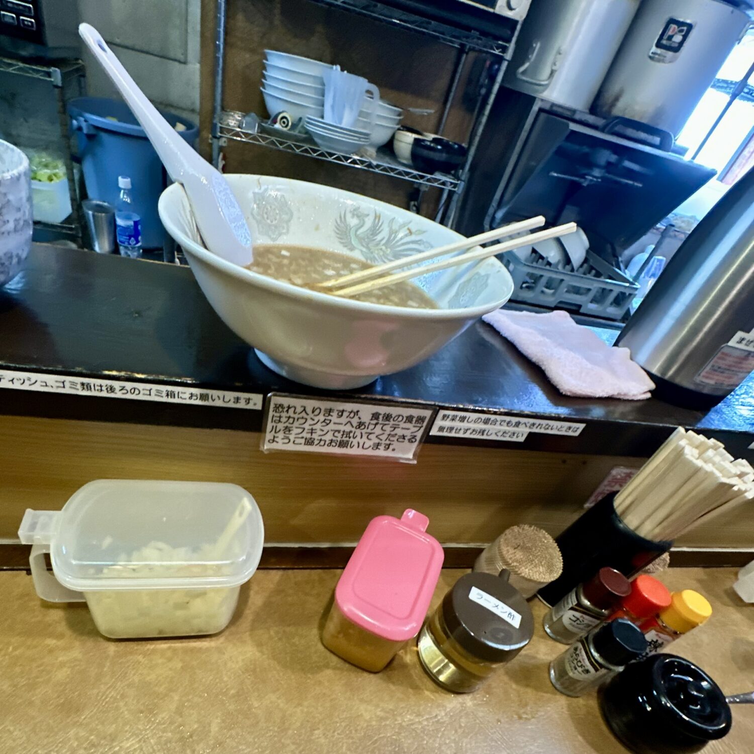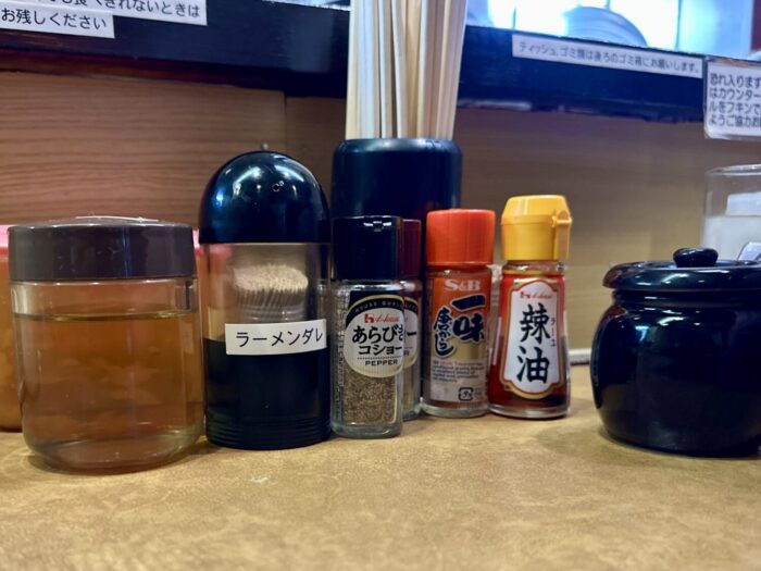 卓上調味料としてはかなりに豊富、ニンニグのマシ具合が自分次第でできるのは体調次第で心強いლ(´ڡ`ლ)