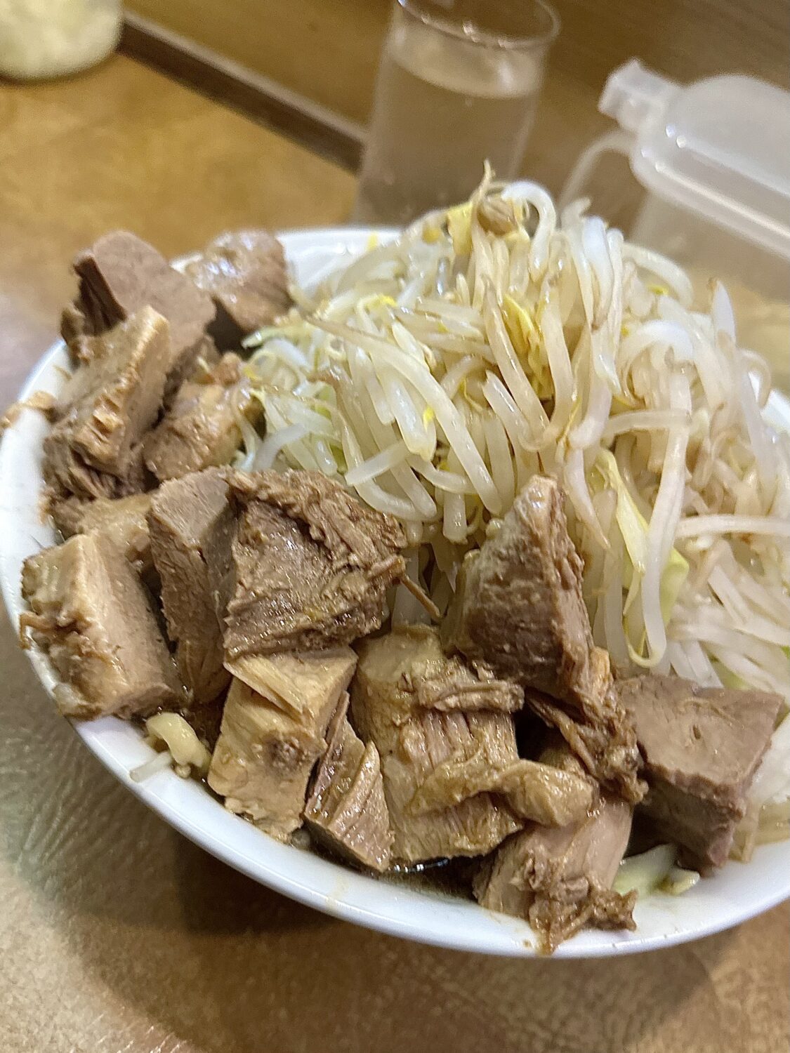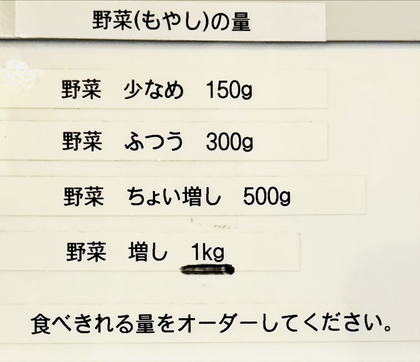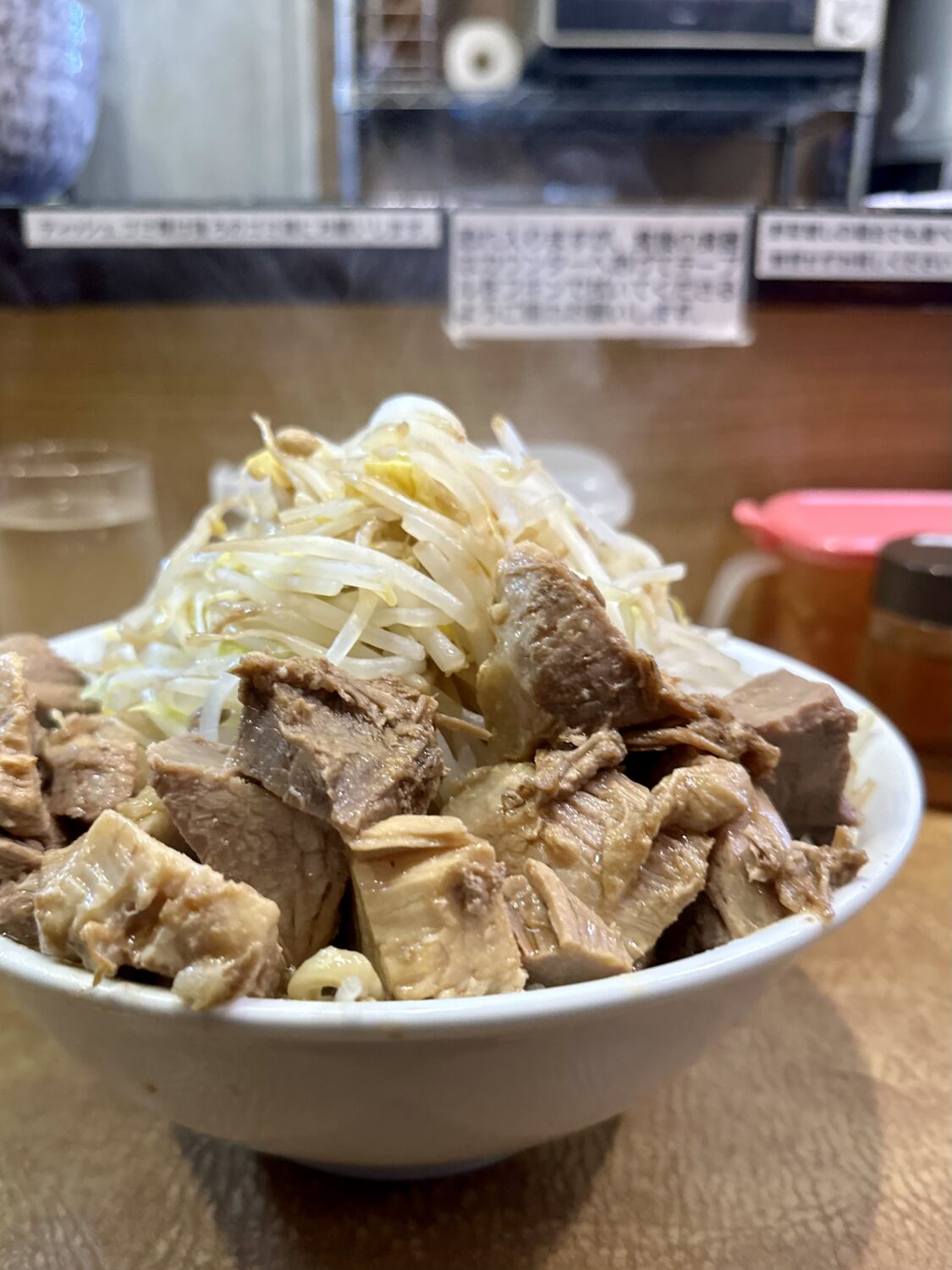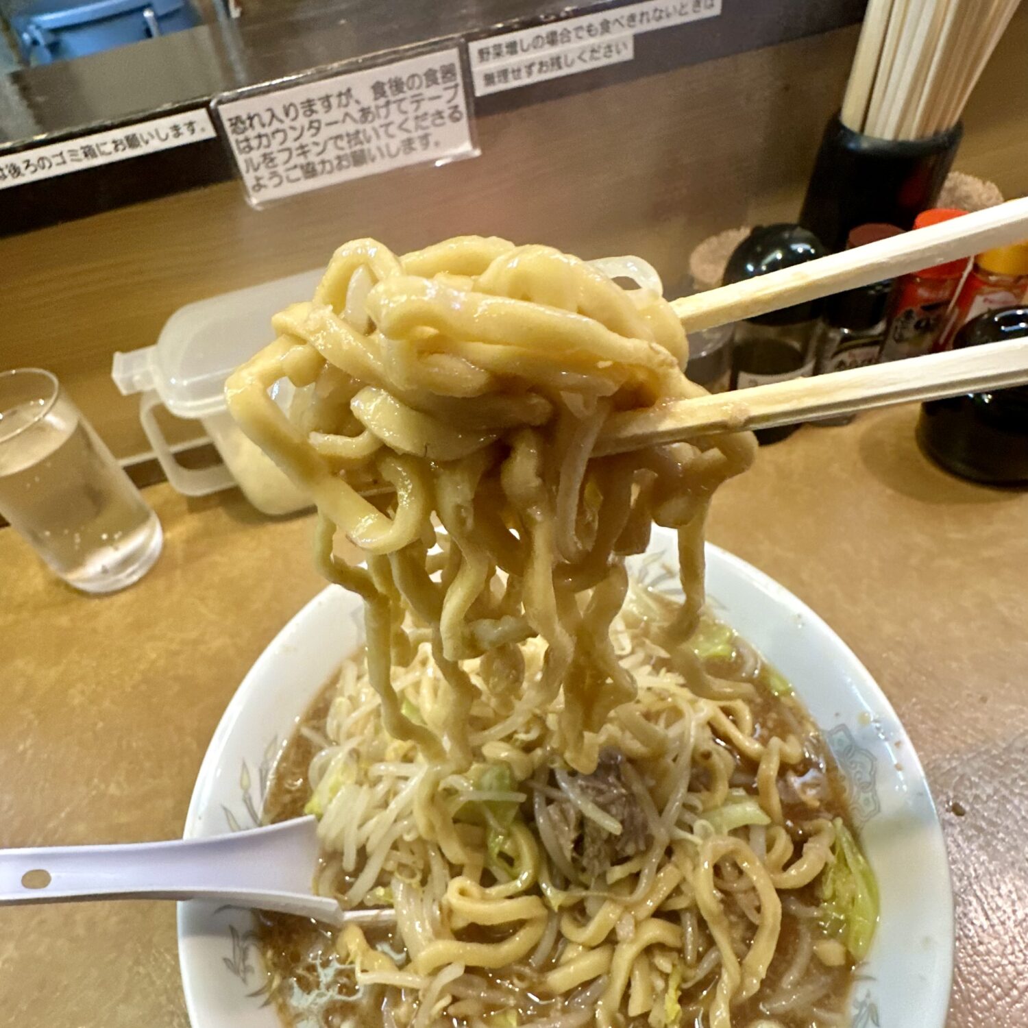 ここは世界中の二郎系見渡しても珍しい、なんと「ヤサイマシ頼んでも許される店」、だからってフザケ半分で頼んでいいことにはならないから要注意m9(☉౪