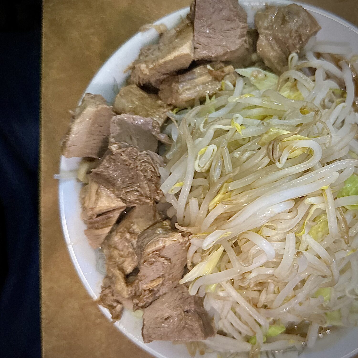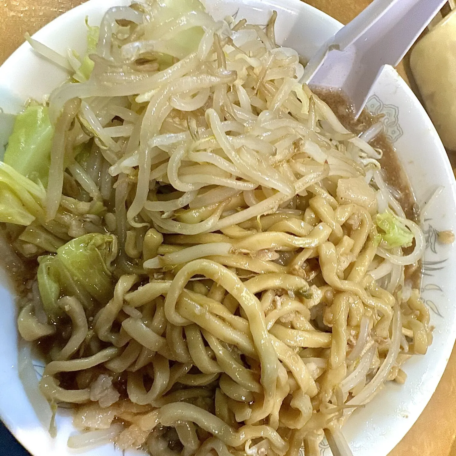 ヤサイの茹で加減は個人的完璧の域、調子いい日ならあとモヤシ2、3本は多くてもイケるっぽい(・c_,・。)