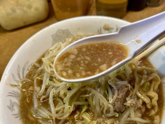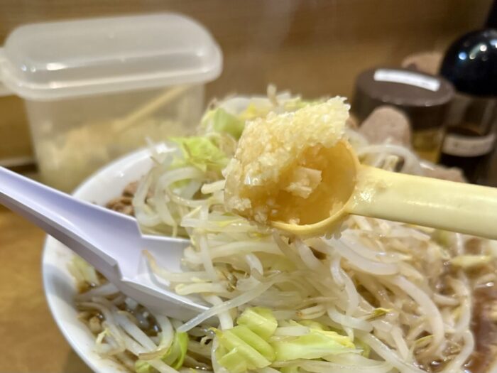 そんなニンニグ絡めて喰うヤサイがまた格別で、スープに一瞬ジャボンとやってから喰えば昇天するレベル