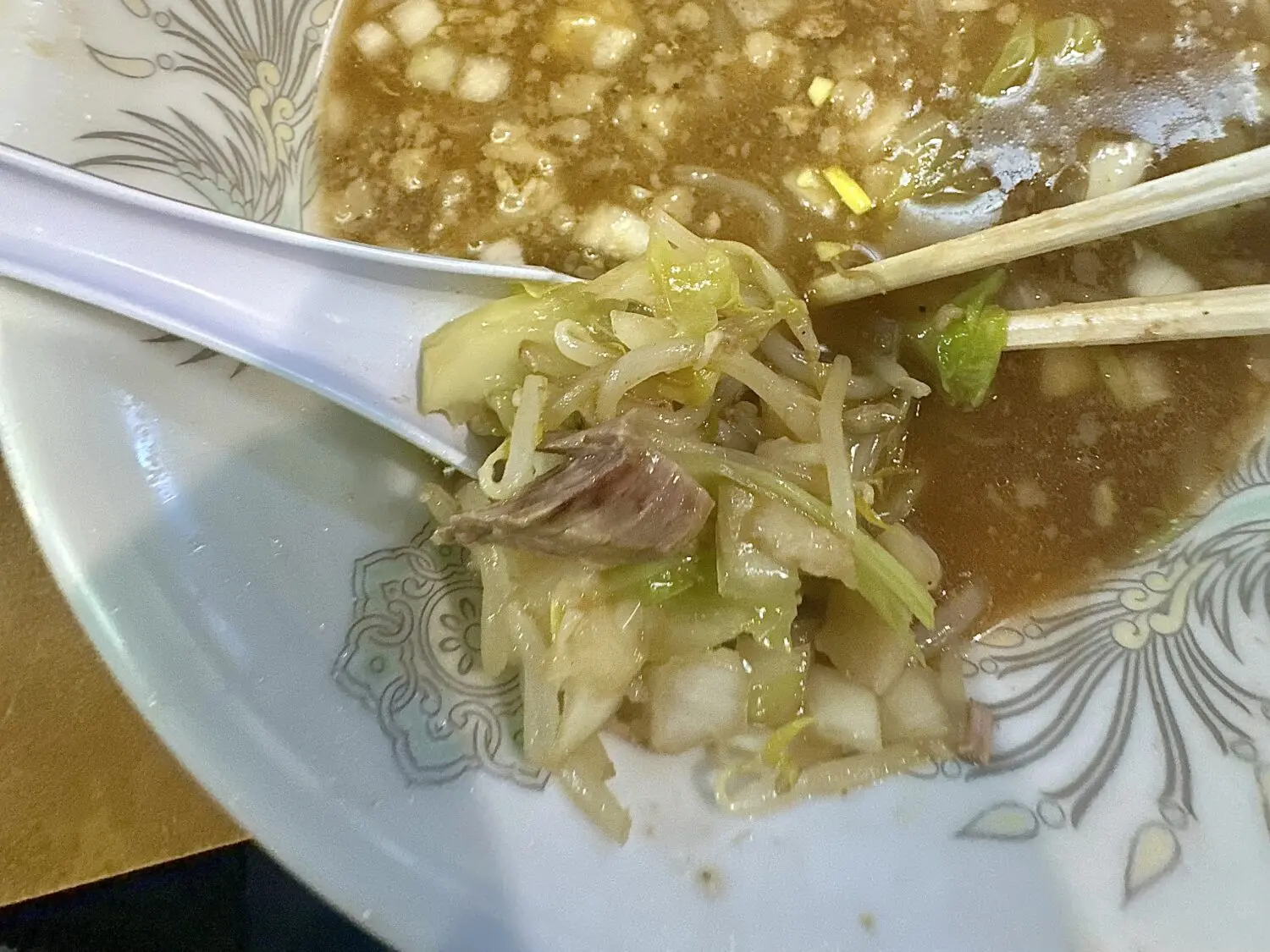 しかし喰っても喰っても減らないわぁ、チョイマシにしたヤサイが多いのはもちろんだけどきっとこれ麺量も並で結構入ってるぽい(థ公థ。)