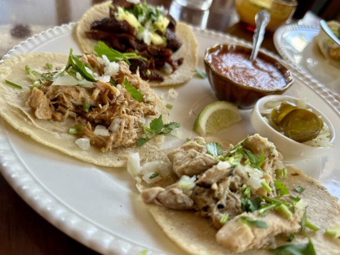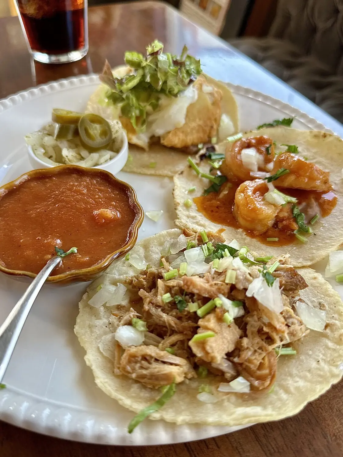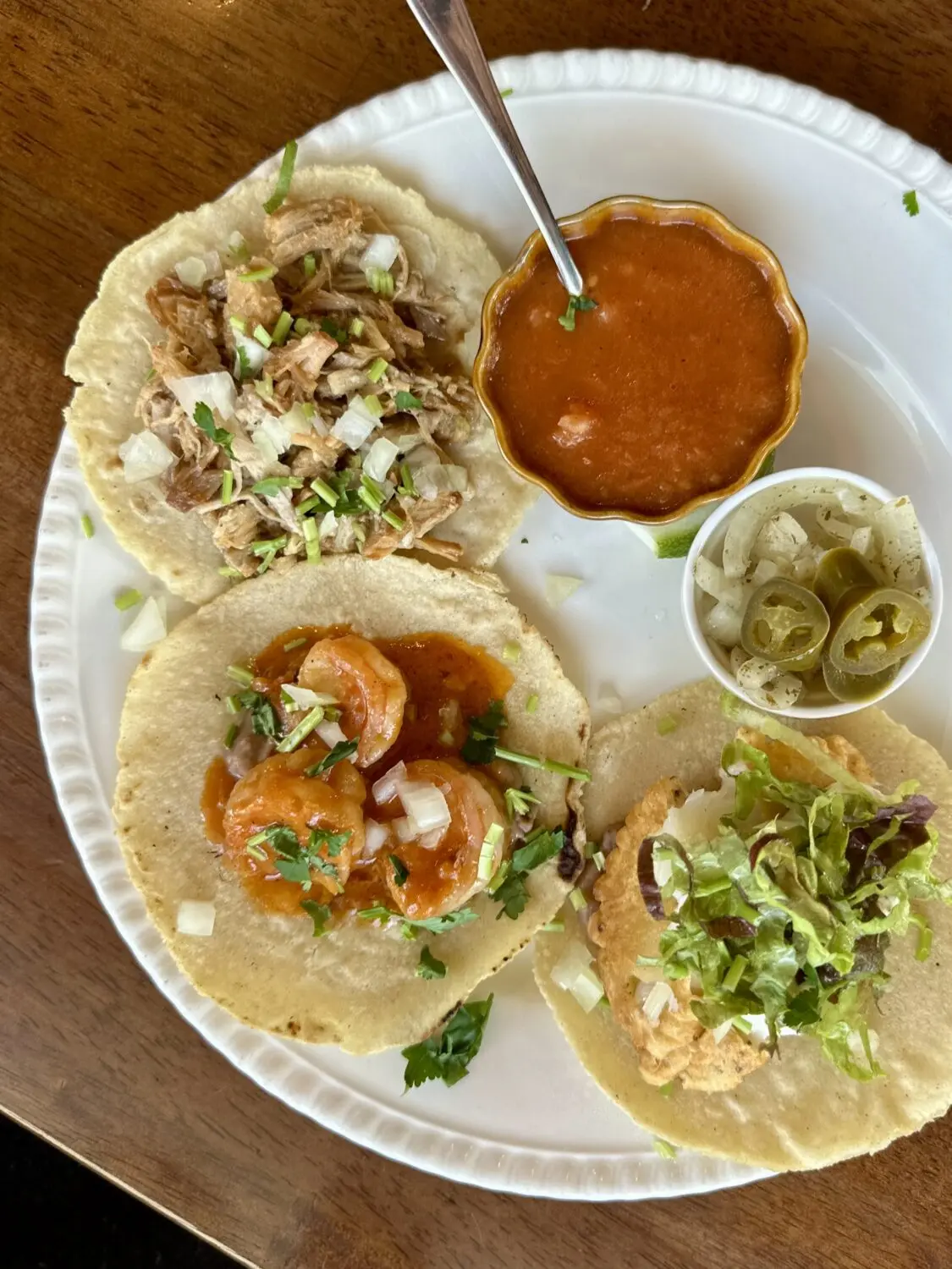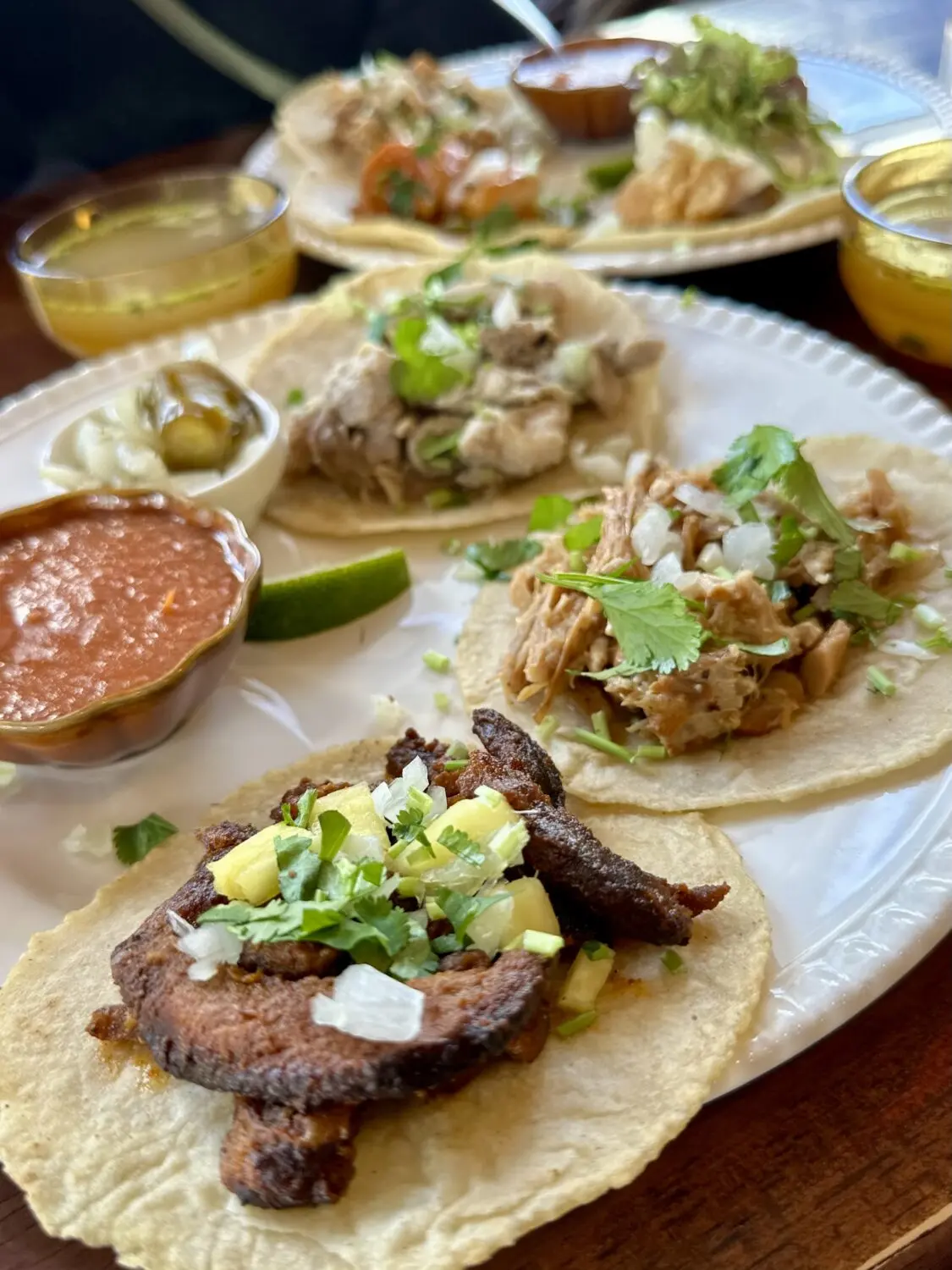 ランチタイムは定額税込1,320円で、7種類のタコスから3品選ぶ仕組み。