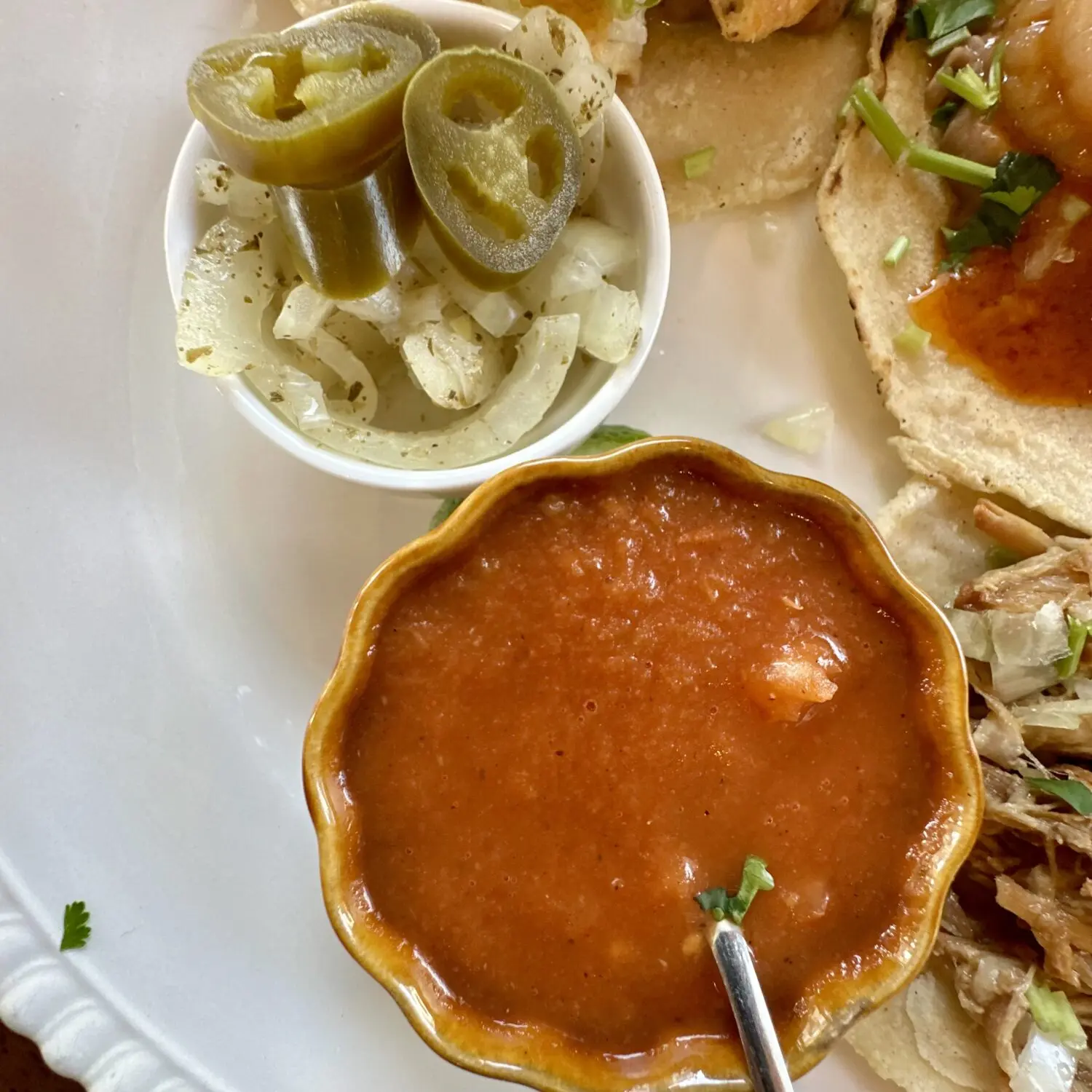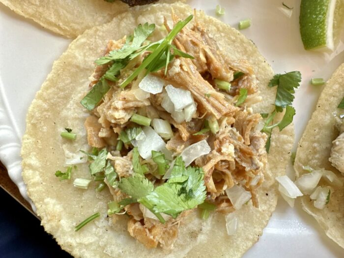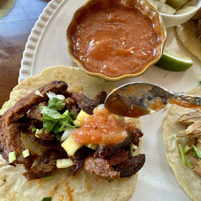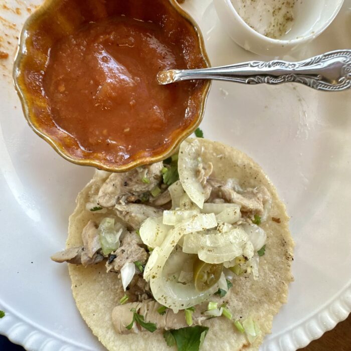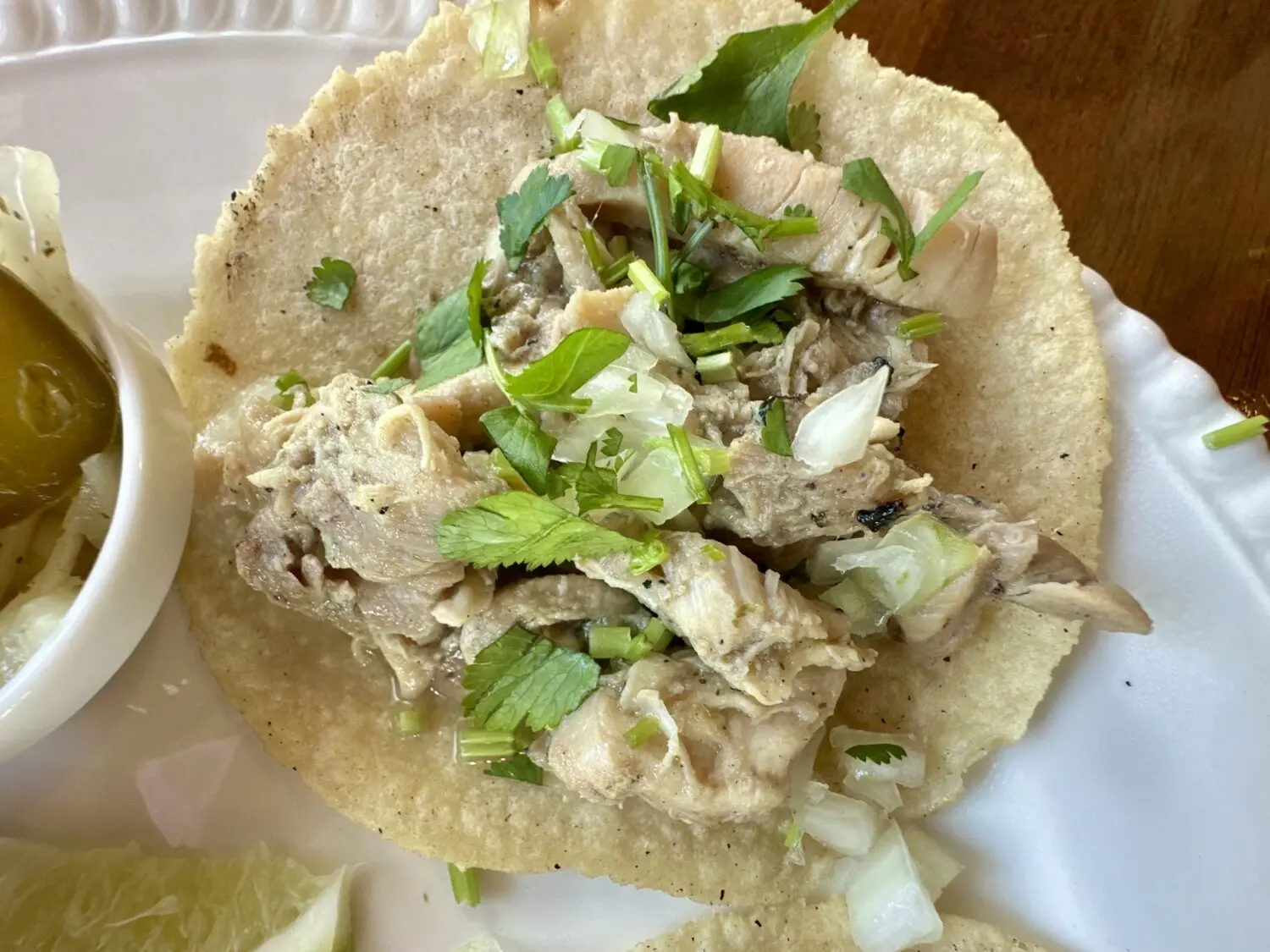 カルニータス:豚肉をホロホロになるまでオレンジでコンフィしたタコス