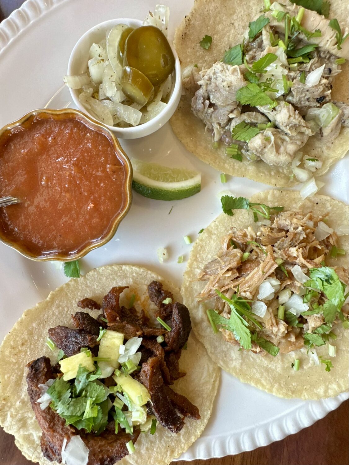 そしてこちらBさんサイドタコス、注文の3品は下から反時計回りに次の通り