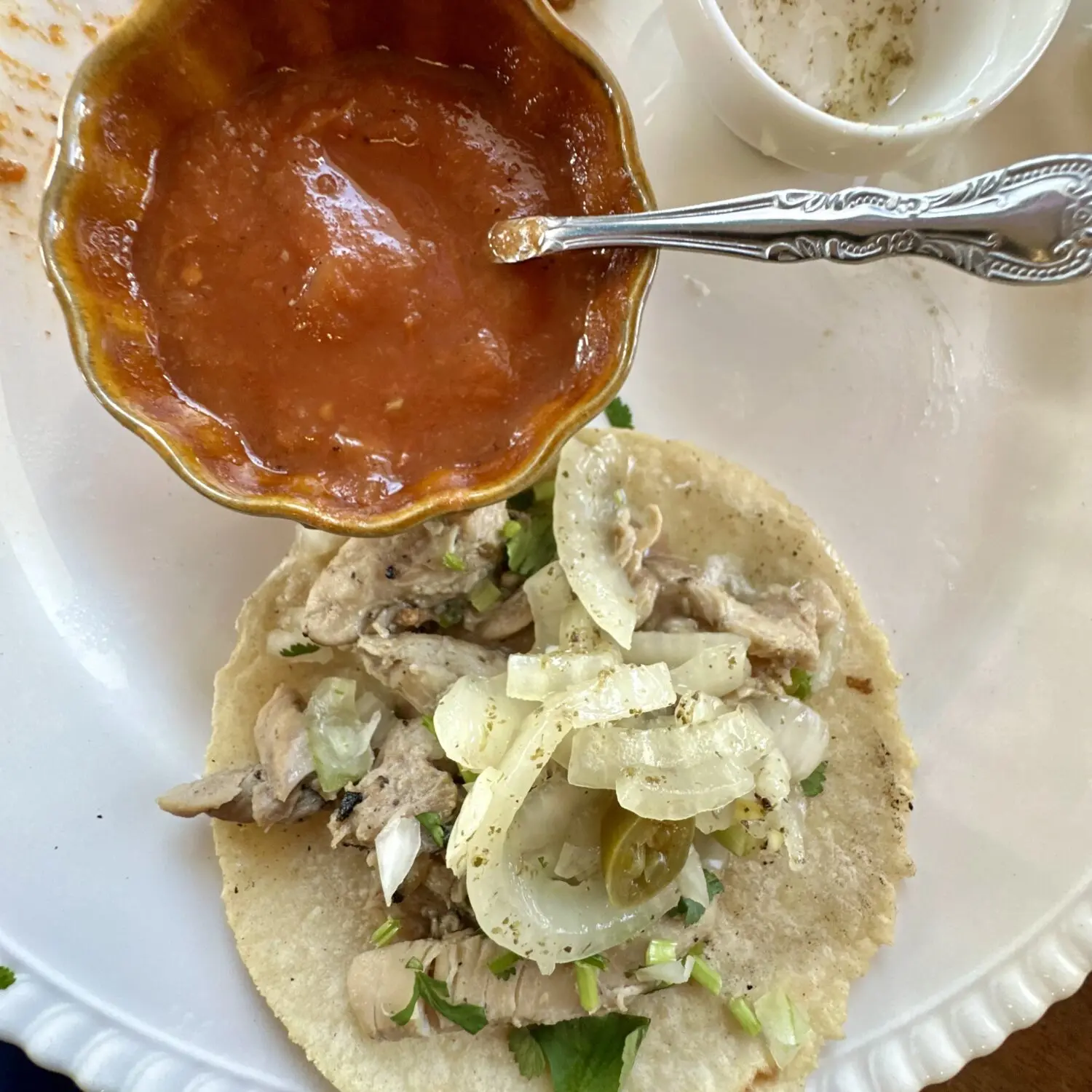 チキンのタコス:香りが出るまでじっくり網焼きしたチキンのタコス