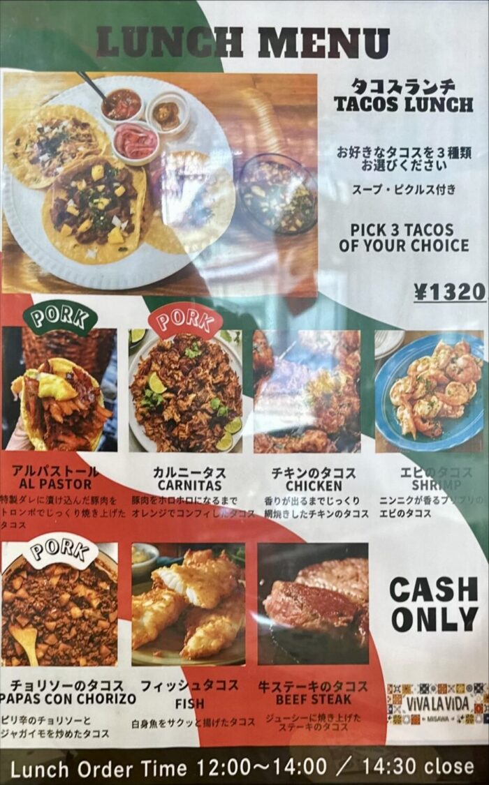 ランチは好みの3品選んで定額1,320円の明瞭会計、タコスに不慣れすぎて選べない気持ちが染み出ちゃう自分に会えるかも