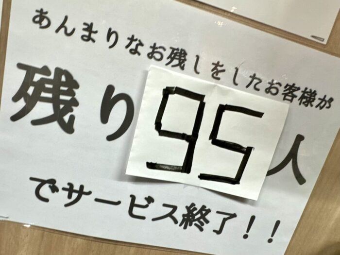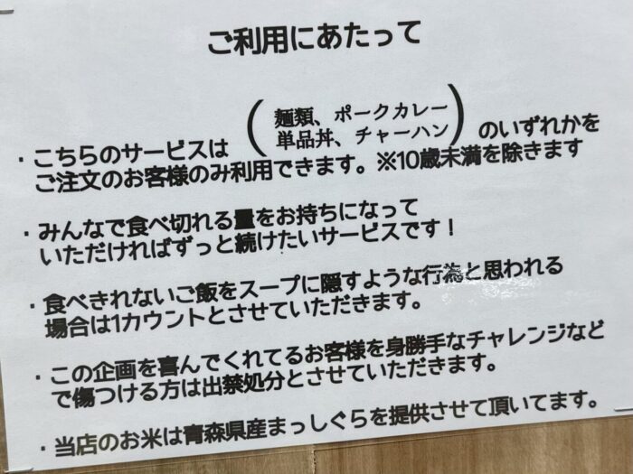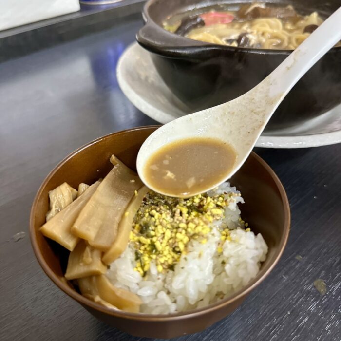 すでにもう5人もあり得なぁぁあい残し方したらしく、残95人のカウンター横目に飯盛りメンマ盛りサービススープ盛り待つこと数分。